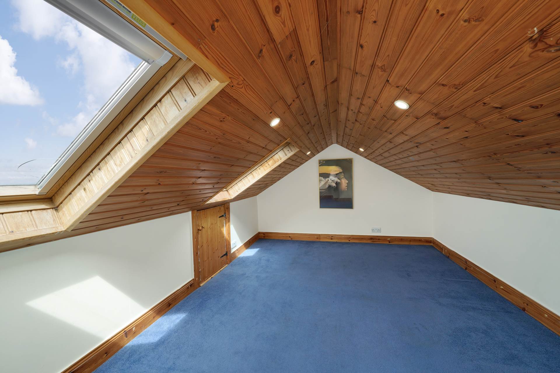 Fully floored and finished, 2 x Velux skylights, light fitting, phone/broadband point.