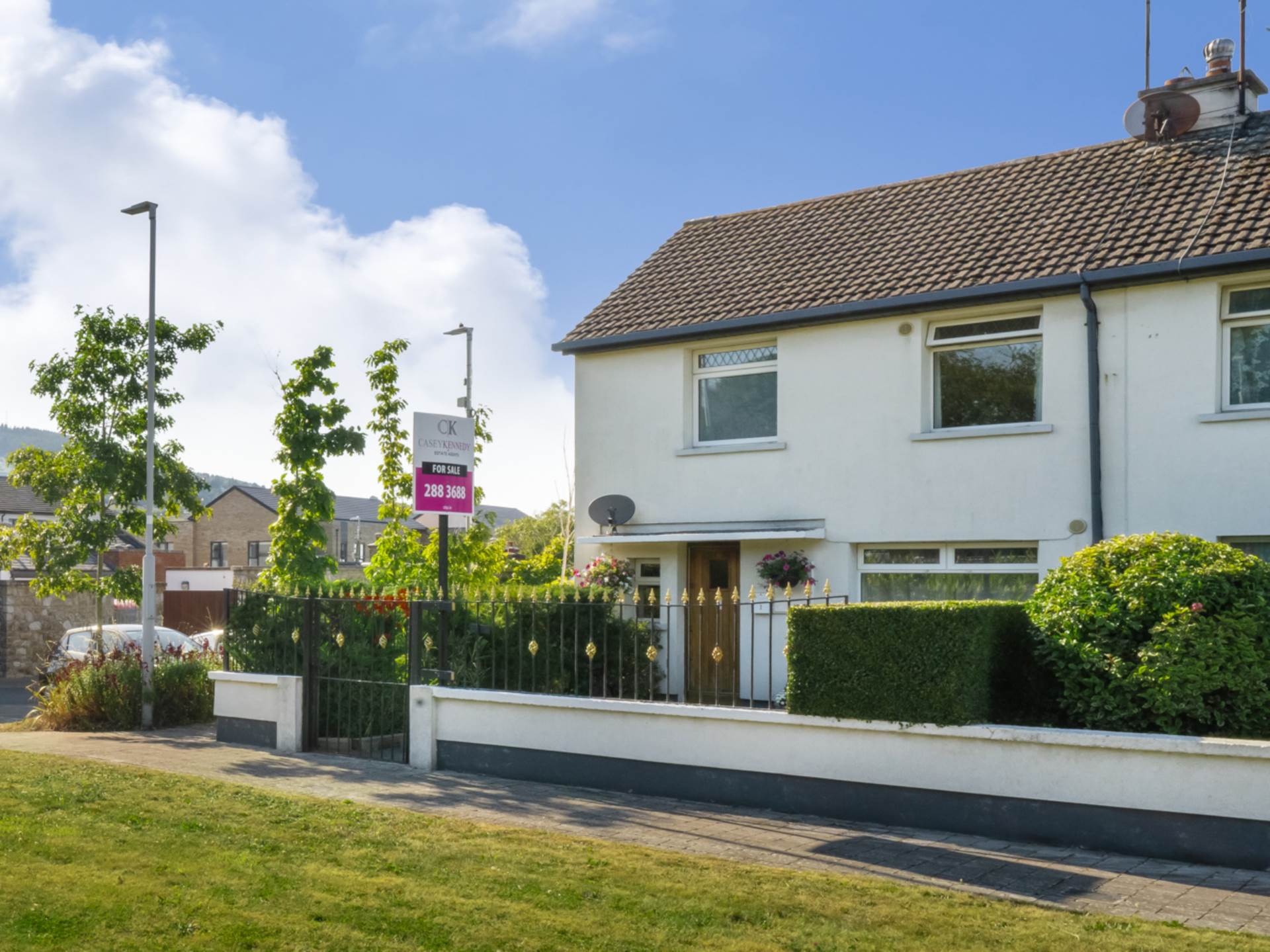 You will be amazed at how this home in the heart of Kilternan Village, fronting onto a spacious green, has been completely transformed by the current owner into a home full of character. The access road runs behind this property - giving potential for private parking to the rear.