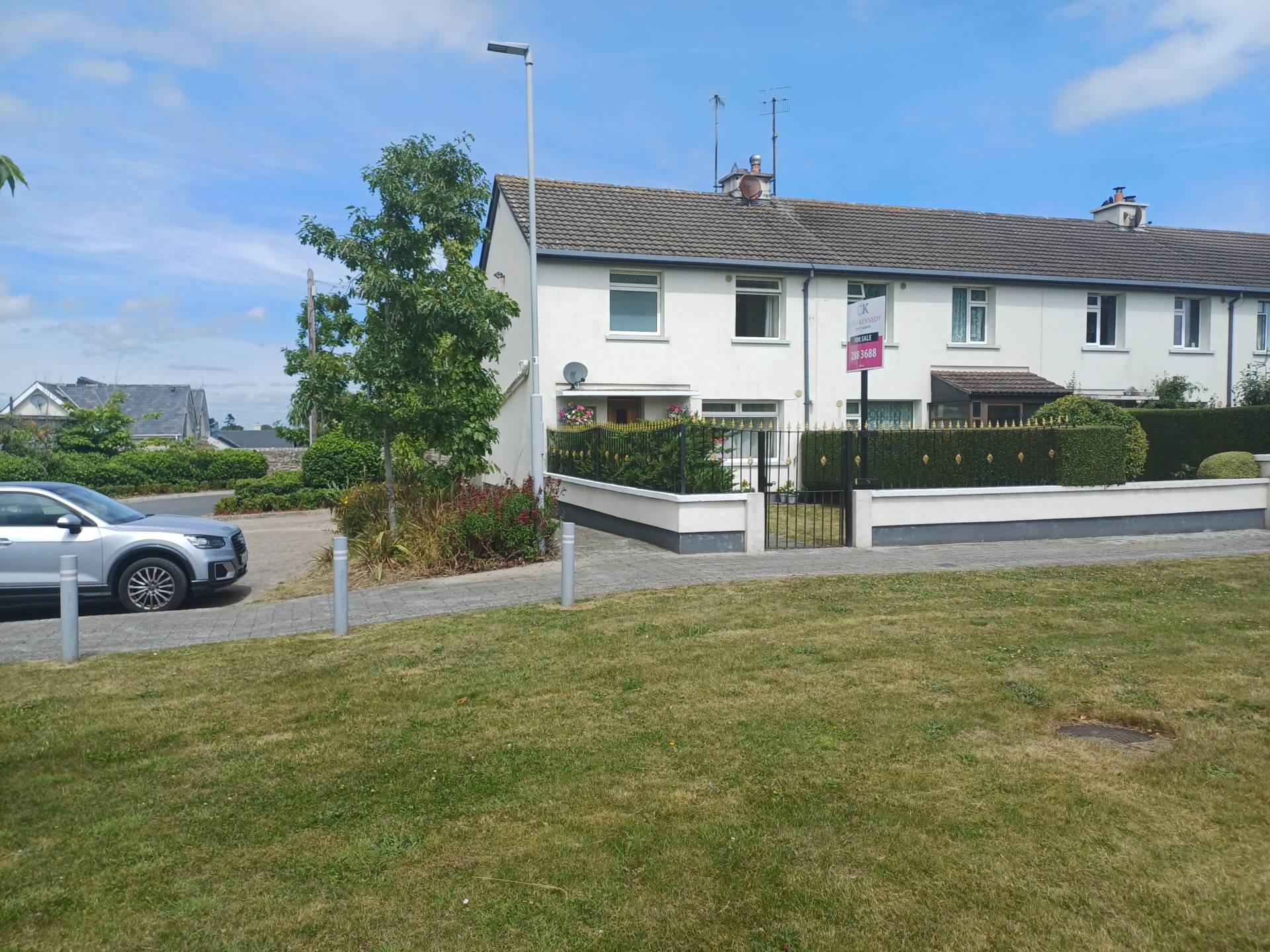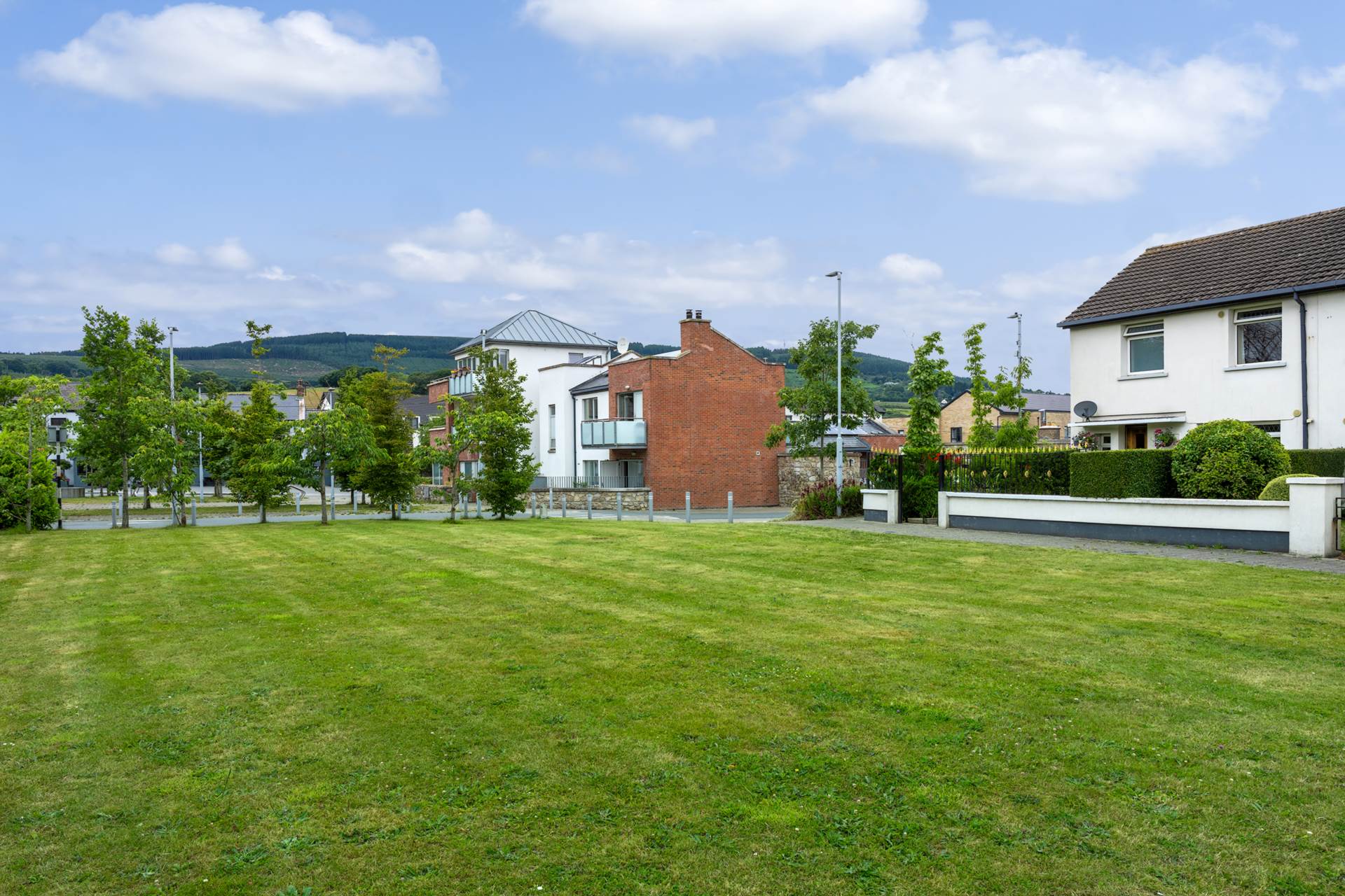 This property is situated at the end of a terrace of four homes facing the village green in Kilternan, directly across from The Golden Ball. The landscaped parking spaces either end of the terrace are for residents and guests. There is abundant parking with a total of 17 parking spaces.