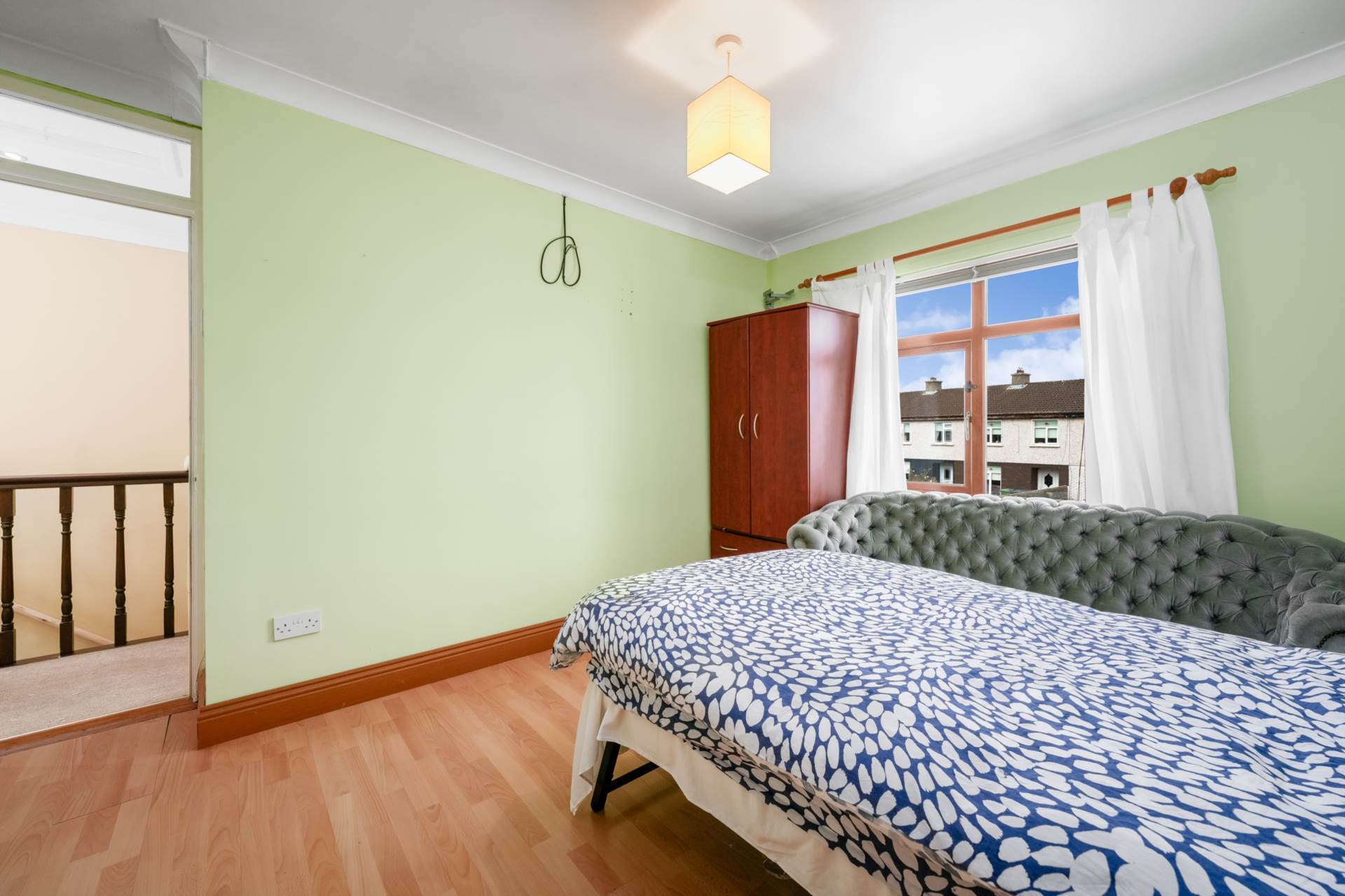Spacious double bedroom. Window to front. Fitted wardrobe. Wood laminate flooring.