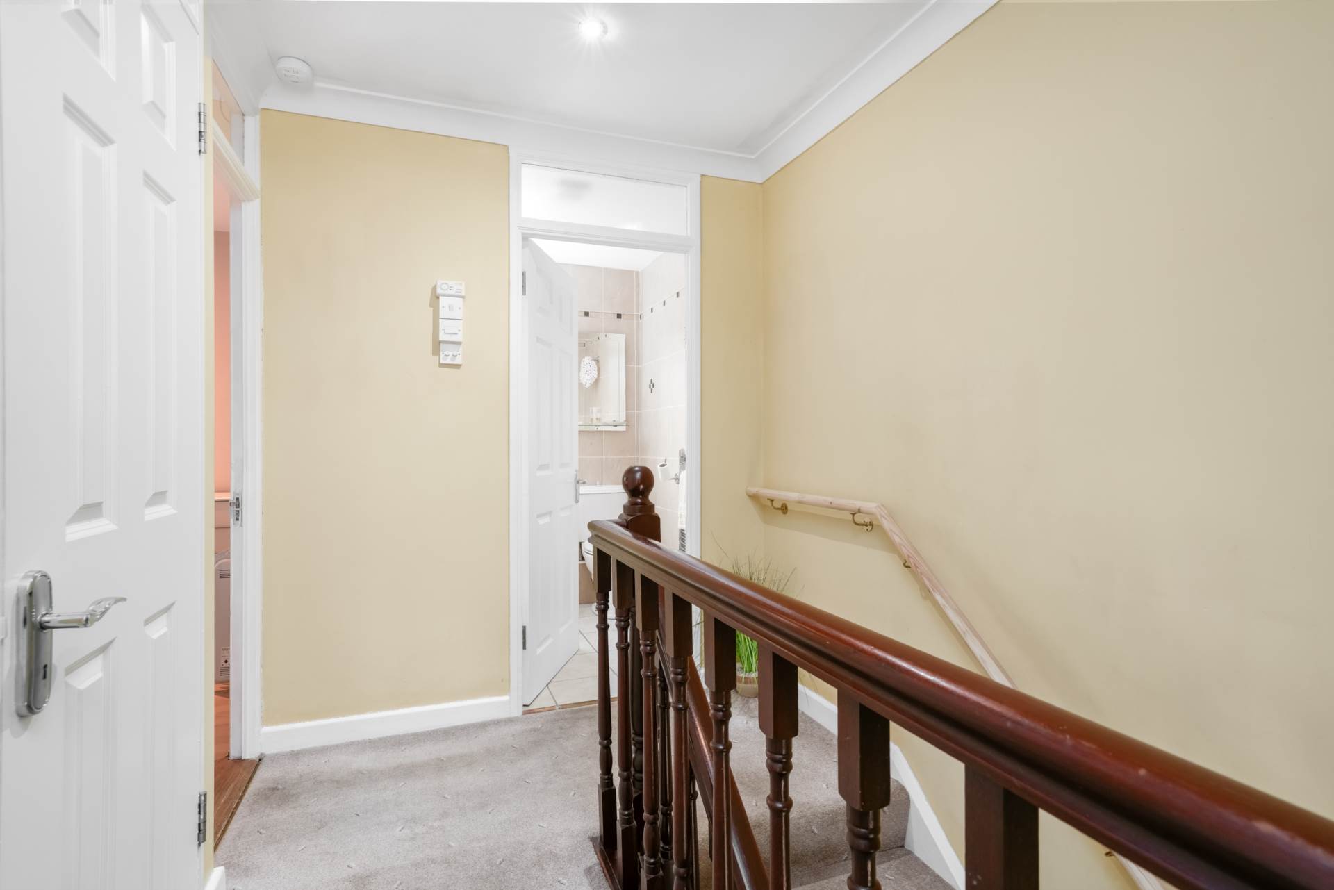 Carpeted landing. Hot press.