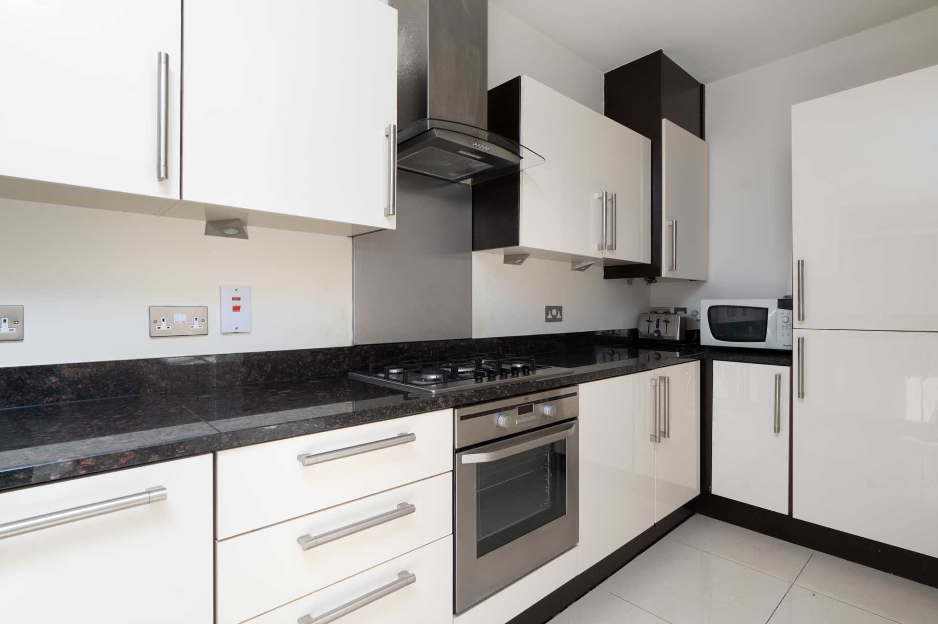 Ceramic tiled floor. Modern fitted kitchen. Granite counter-tops. Appliances included.