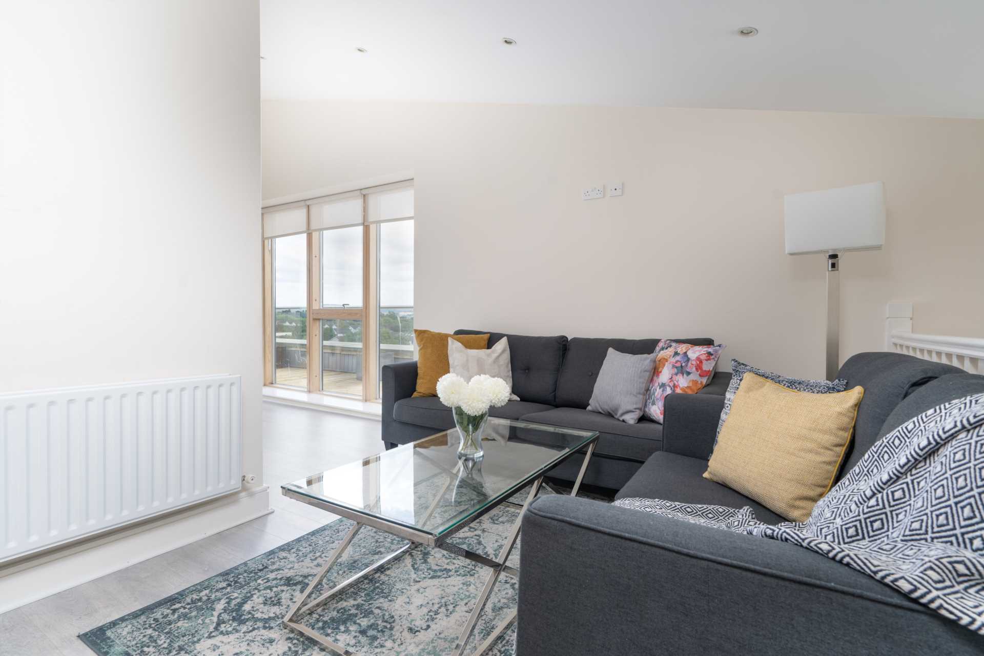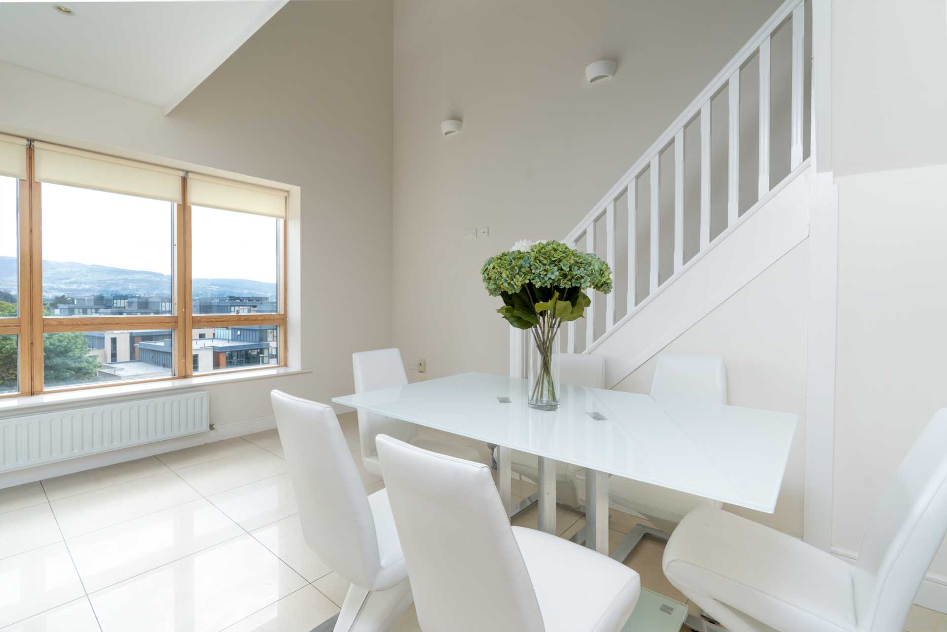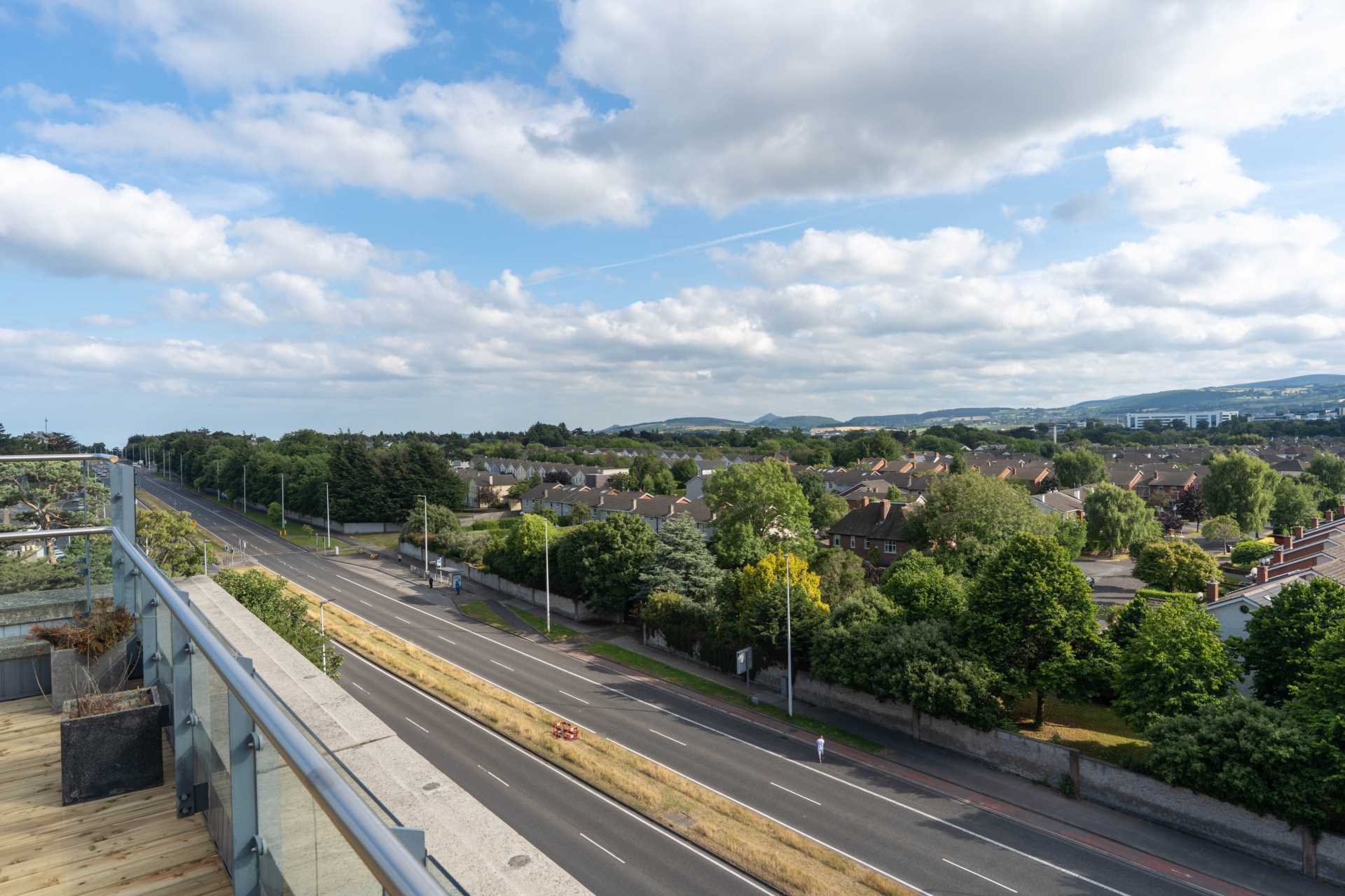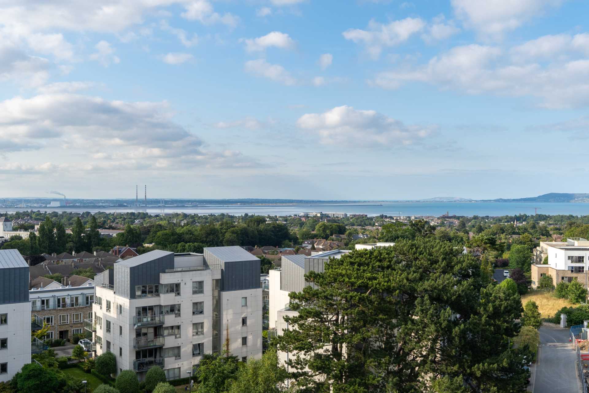 Exceptionally bright penthouse with a private roof terrace boasting truly exceptional panoramic views of Dublin Bay, Howth Head, Killiney Hill, The Dublin Mountains and Dublin City. The windows from all three bedrooms have uninterrupted sea views. The afternoon and evening sun floods into the reception rooms through full-height windows framing the views of The Dublin Mountains. In this penthouse you will feel right on top of the world!