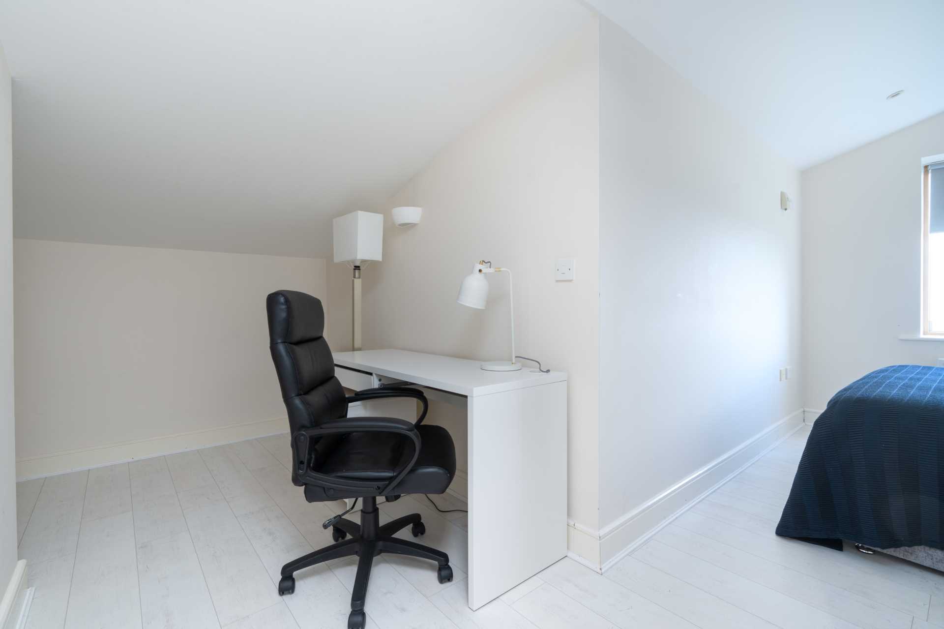 This suite consists of bedroom and a bathroom connected by a walk-through wardrobe space with an adjacent work/study/dressing room leading back to a restricted height storage room, It is accessed either by a door off the upper reception room, or an external door from the landing by the lift.