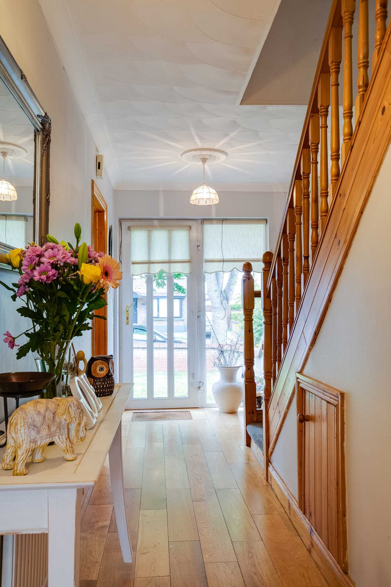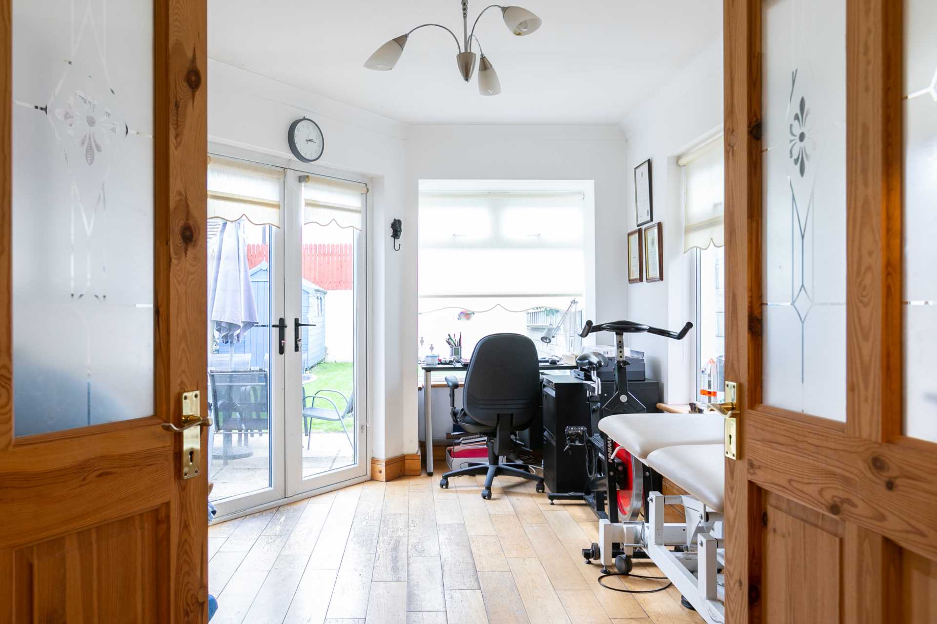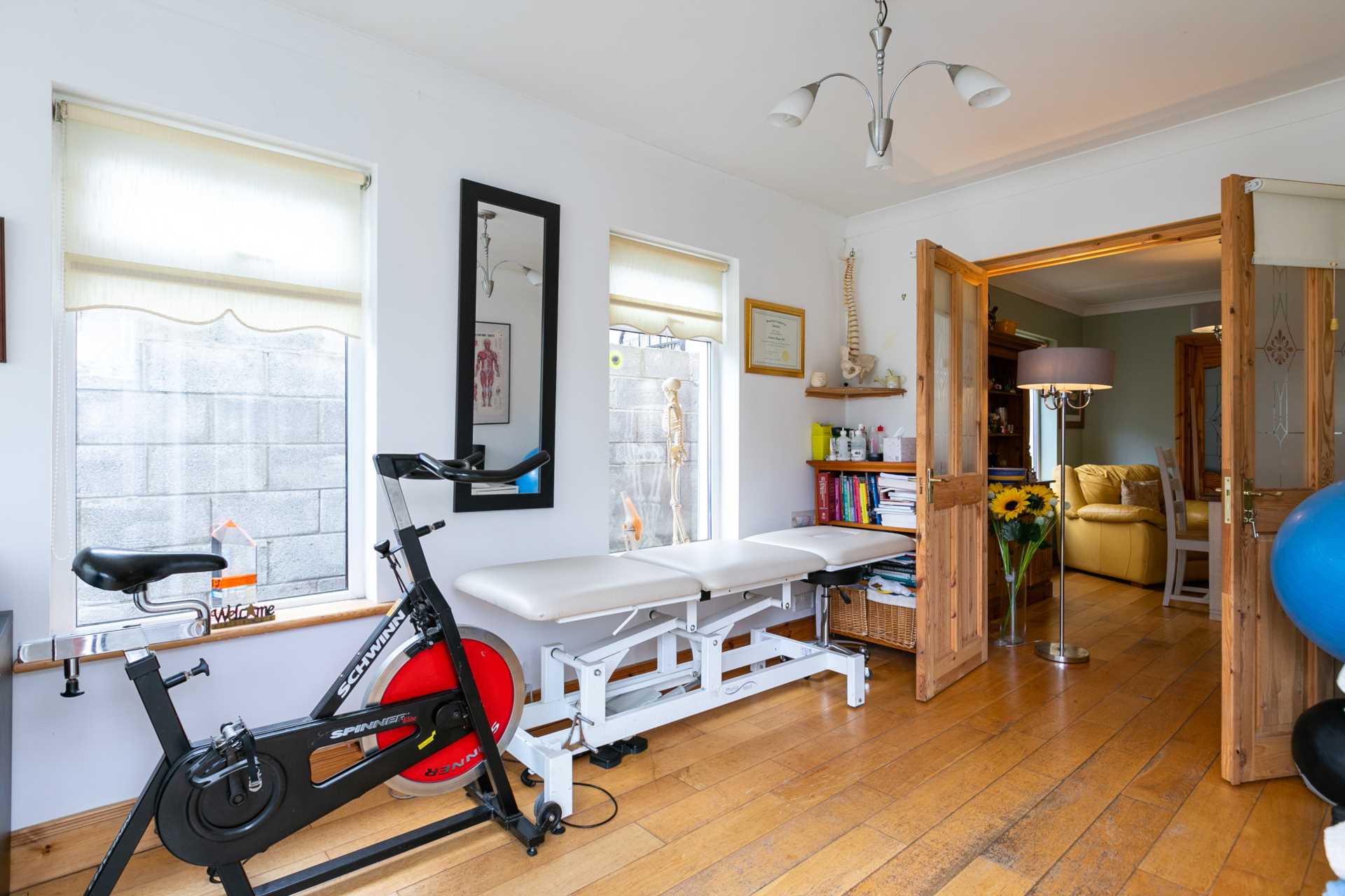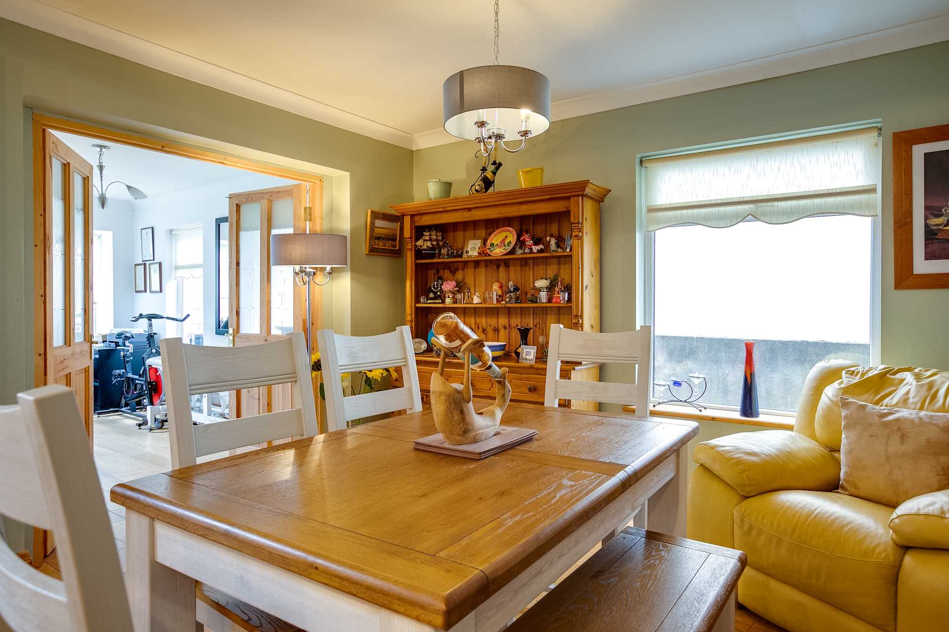 This is a fine family home with a sunny SW facing back garden and an open-plan kitchen/dining room. This home has abundant storage space and great natural light from a large skylight and a bay window. There is a lovely flow of light through this property with bay windows front and rear and glazed double doors connecting all the main rooms. Side facing windows bring in additional light into the dining area and the sun room. The kitchen has lots of press space comes fully equipped with the full range of appliances. The extension adds a fully finished sun room downstairs and upstairs there is extra space in one of the bedrooms, designed as a work area.