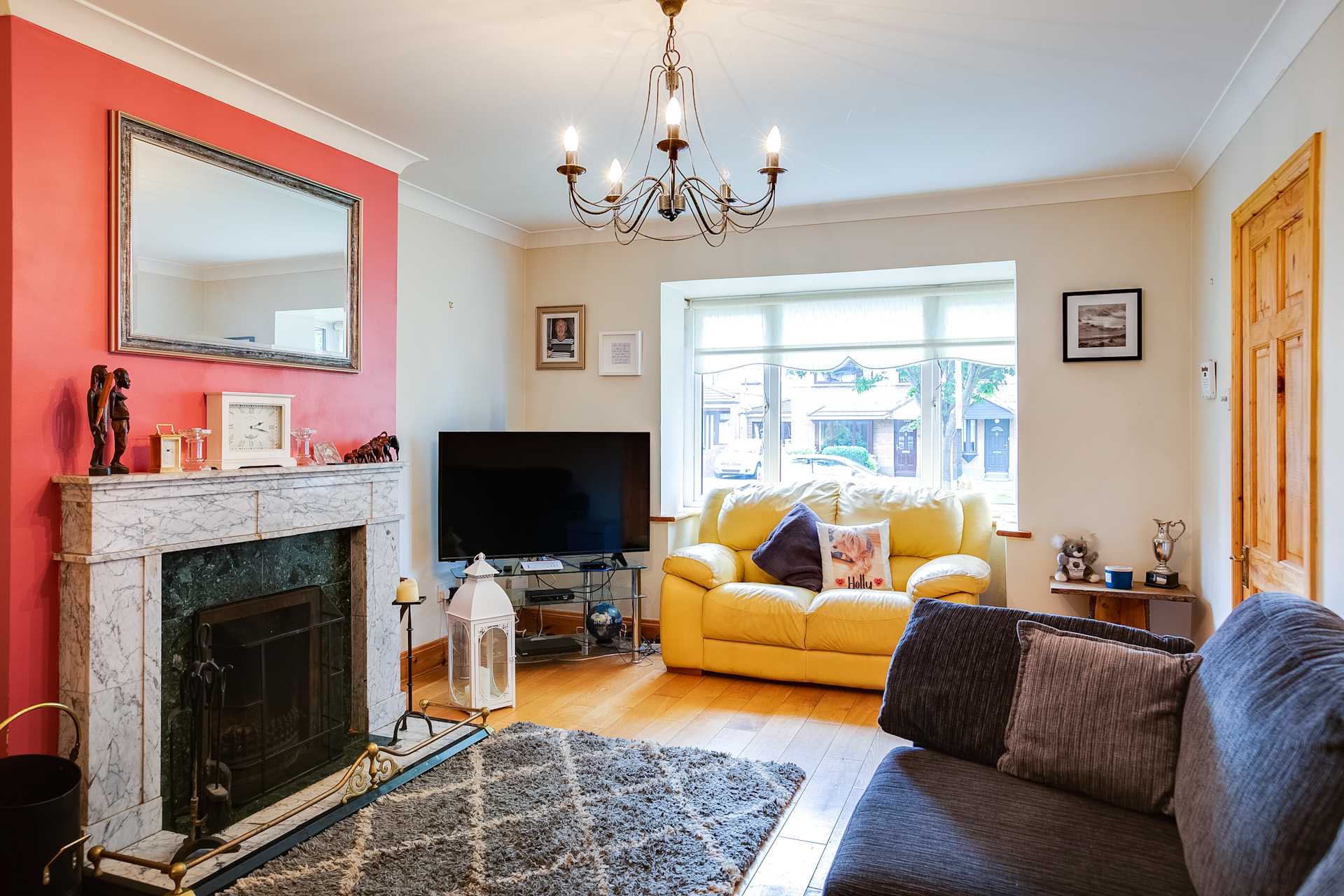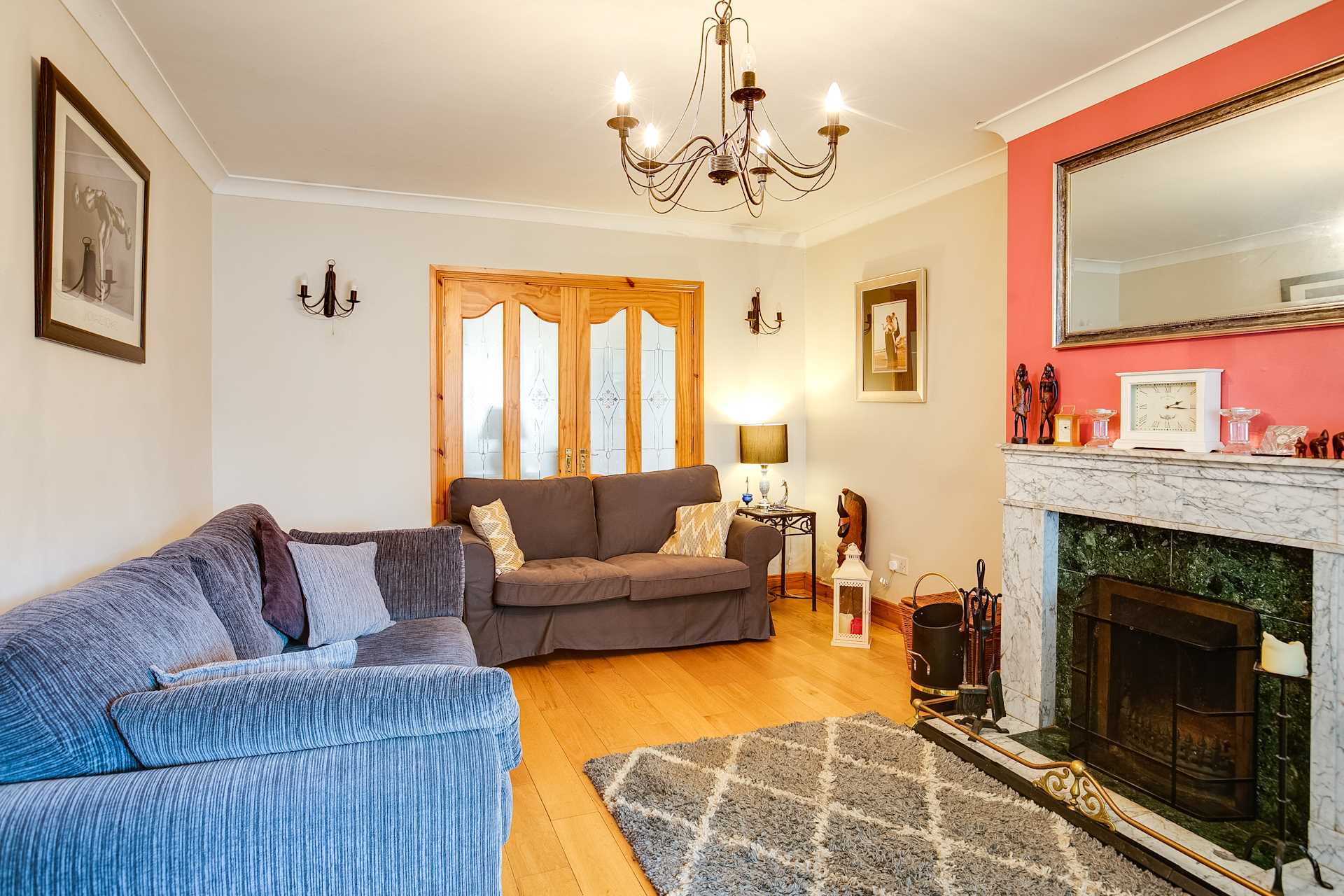 Bay window. Fireplace. Wood flooring. Broadband/TV point. Coving. Centre rose. Light fitting. Double doors to dining room.