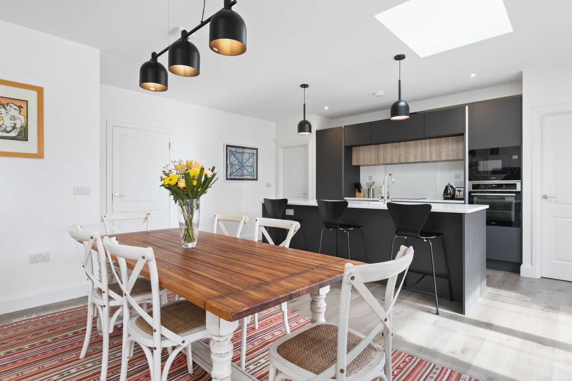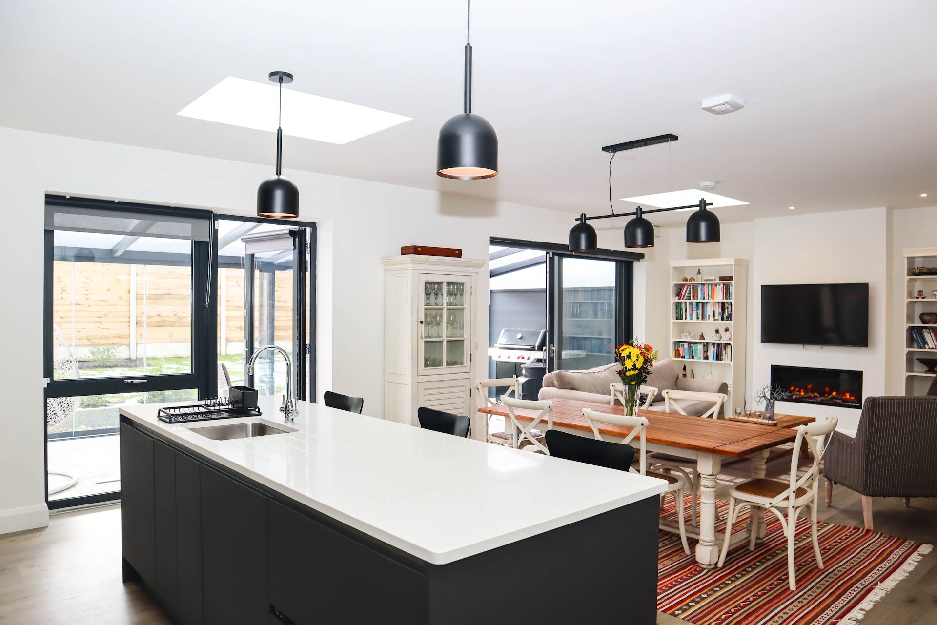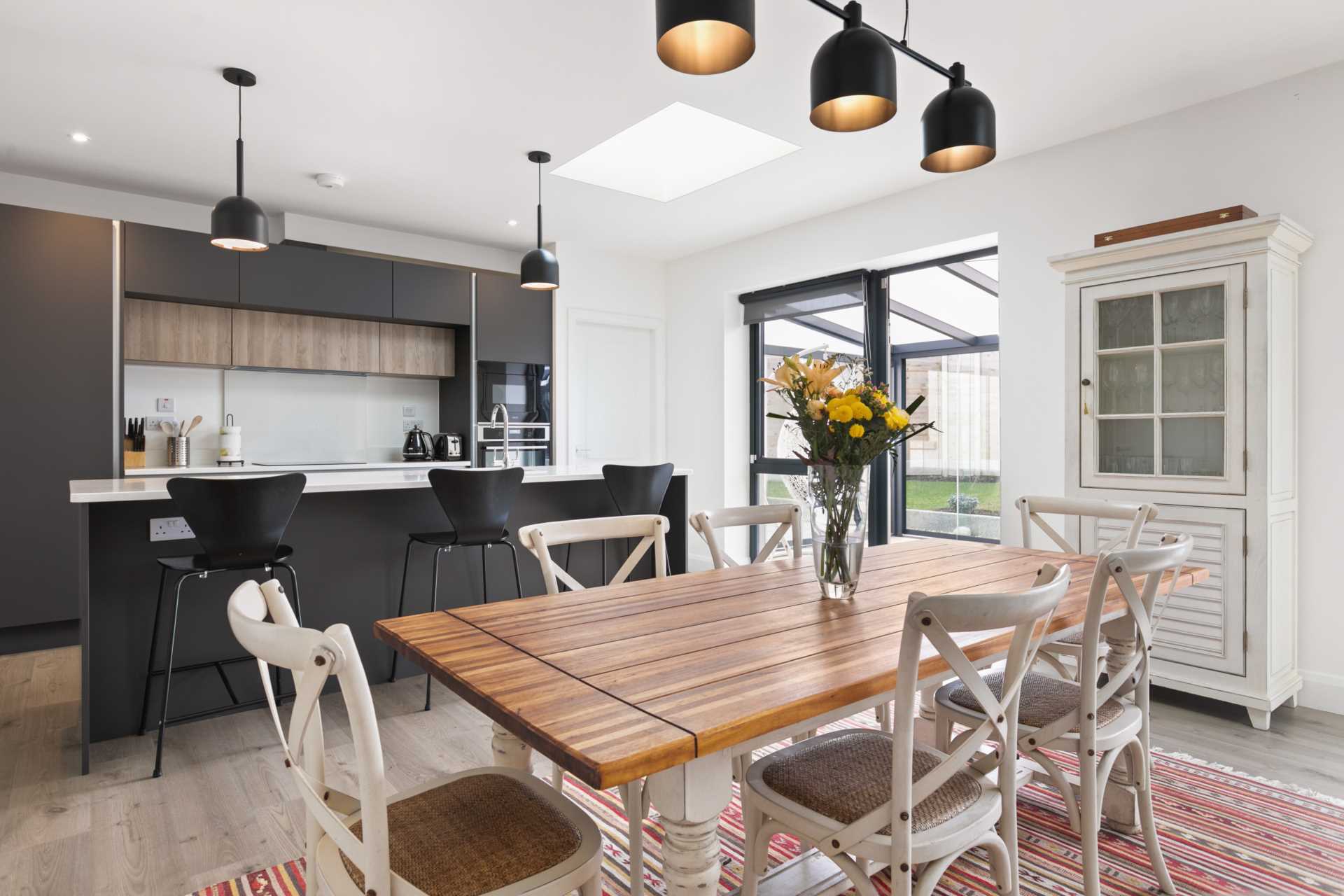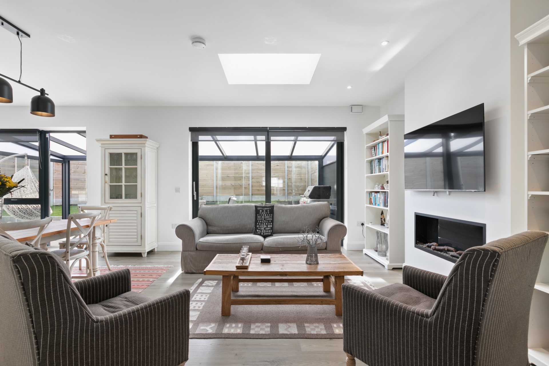 - Bright and extra spacious family room with south facing glazing and two skylights