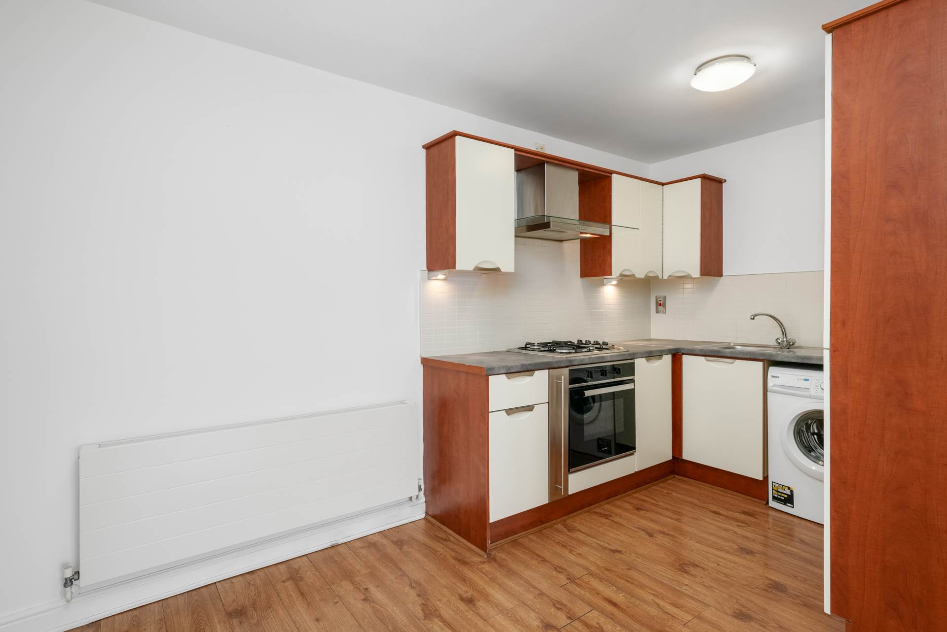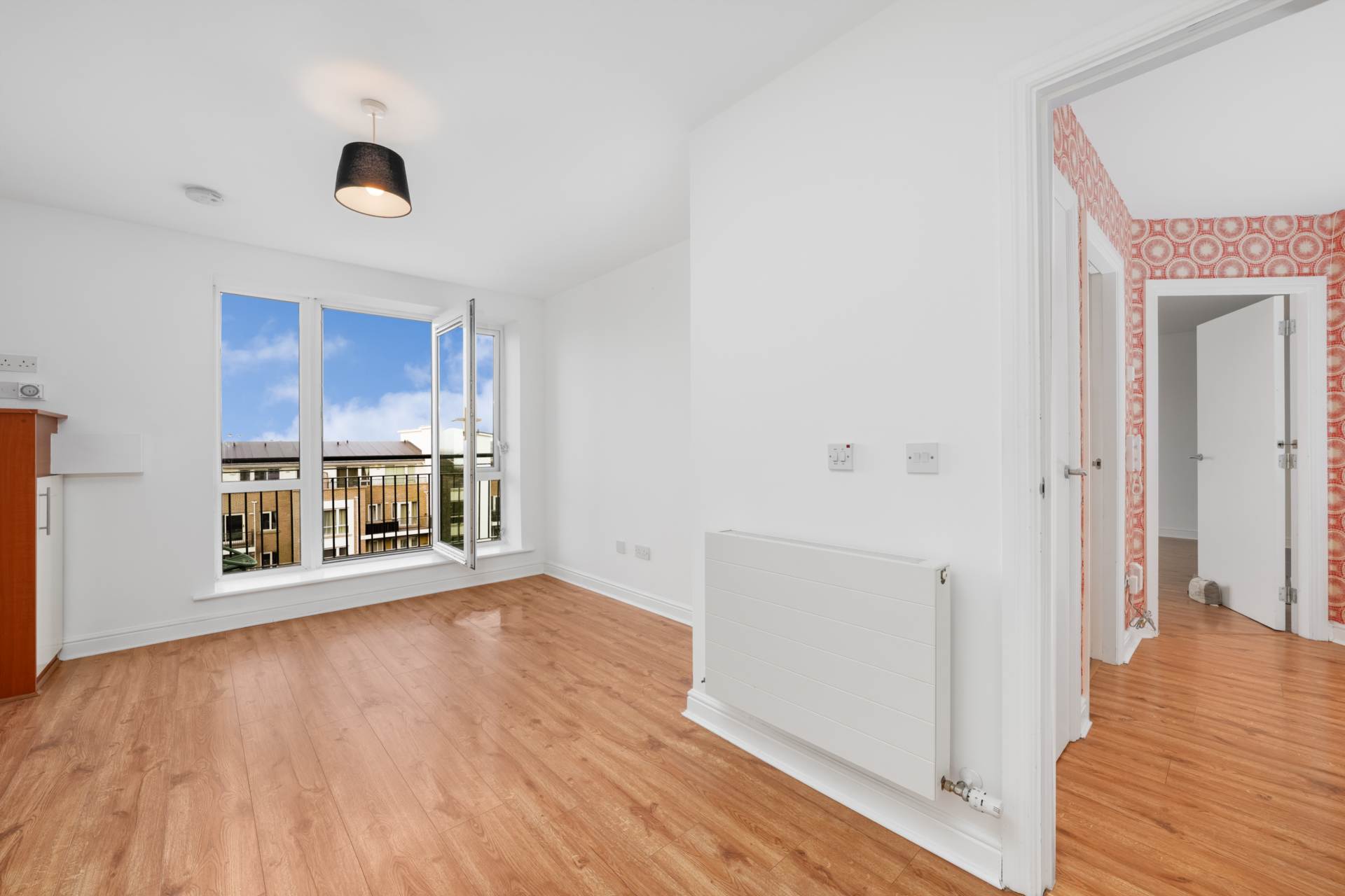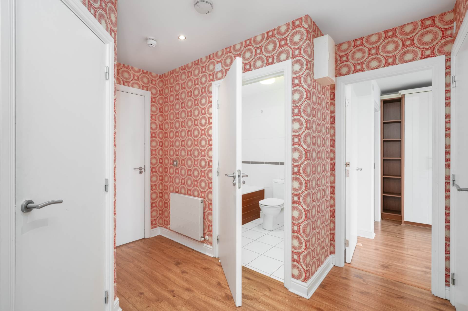 Entering the apartment you are met with a large hallway which leads to all the rooms. Wood laminate flooring. Siro internet access point. Front door intercom. Fuse box.