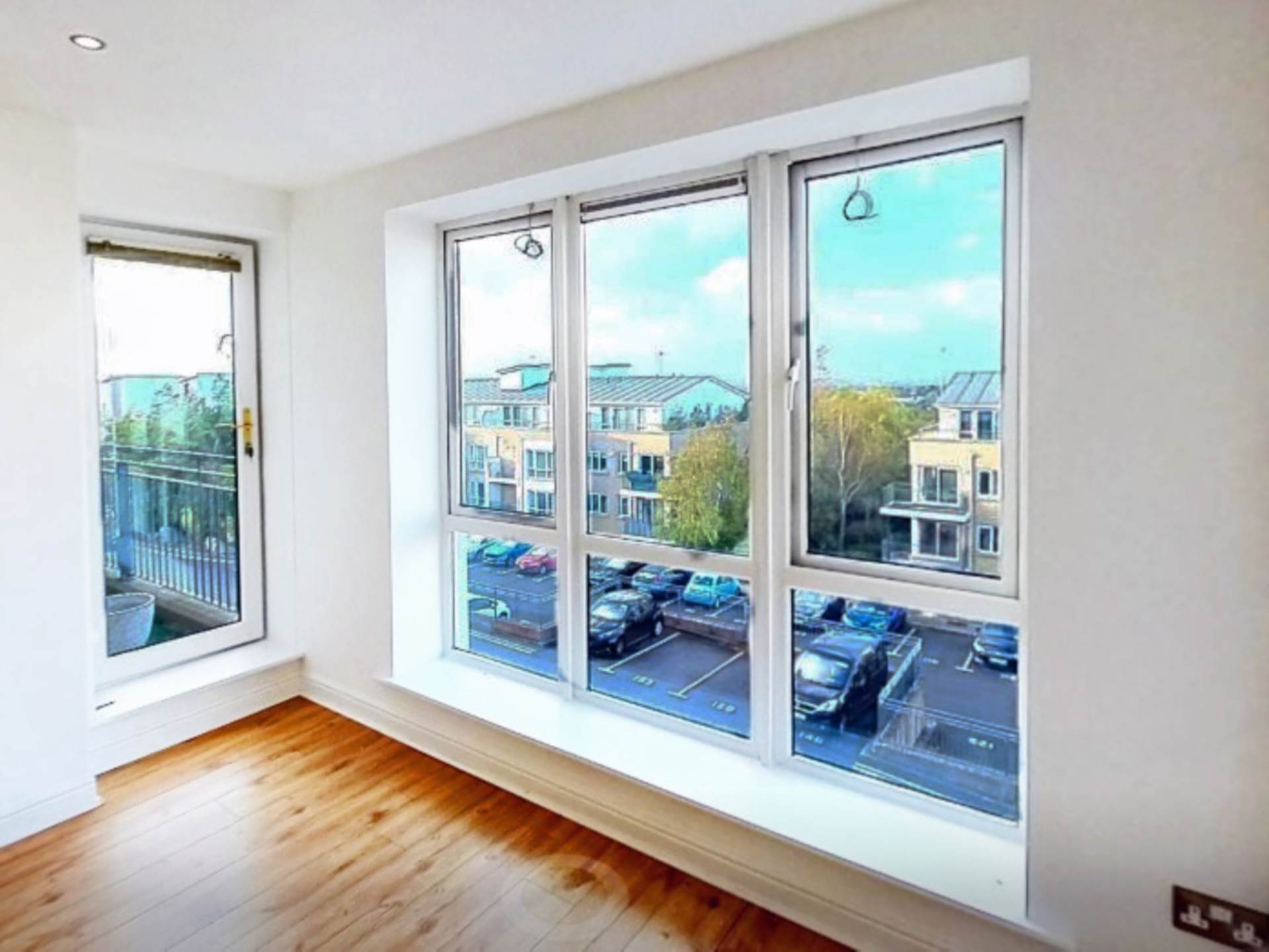 - Large window and glazed balcony door