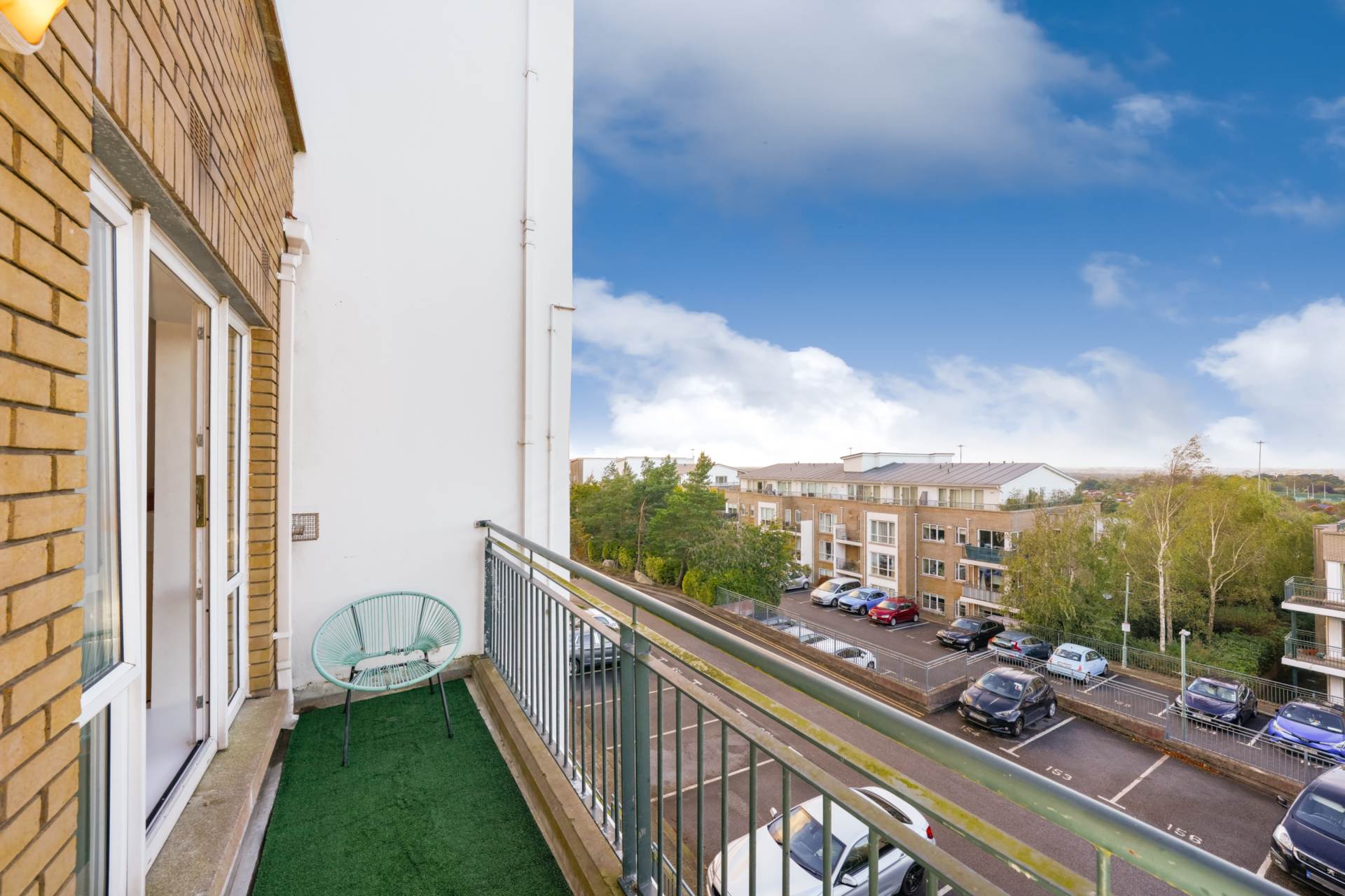 Solid concrete balcony with artificial grass. Accessed by doors from both the living area and the main bedroom. Northerly facing with views over Dublin City. Getting evening sunshine during teh summer from 7.30pm. Gorgeous sunset views.