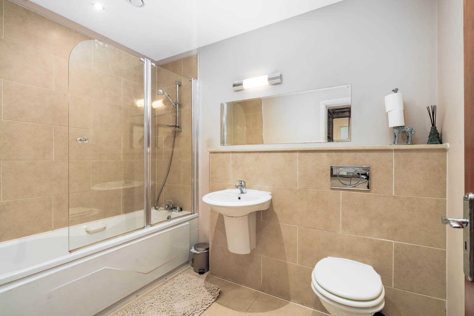 Main Bathroom: (1.87m x 2.67m) Washbasin, WC, and bath with overhead shower.