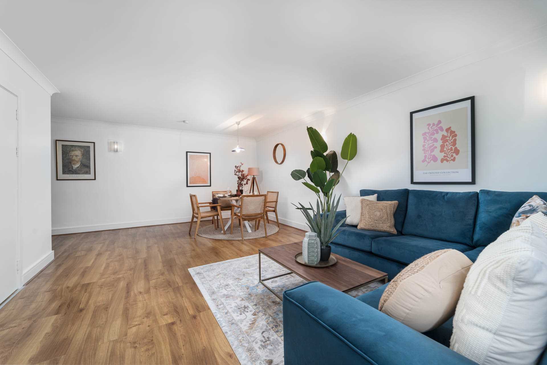 Accommodation briefly comprises open plan living/dining room, separate fully-equipped kitchen, an exceptionally large main bedroom and a second double bedroom, both with built-in wardrobes. There is a spacious bathroom. Off the main living area there is a 7 square metre balcony with a southerly facing orientation.