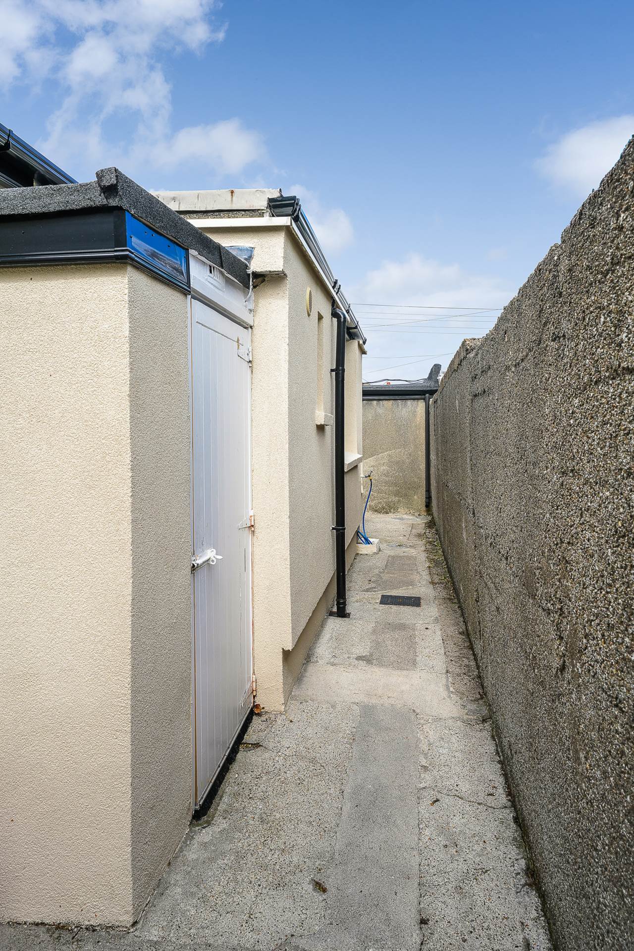 Leading from the garage to the back garden. Outside tap. Outside power outlet. Water butt.