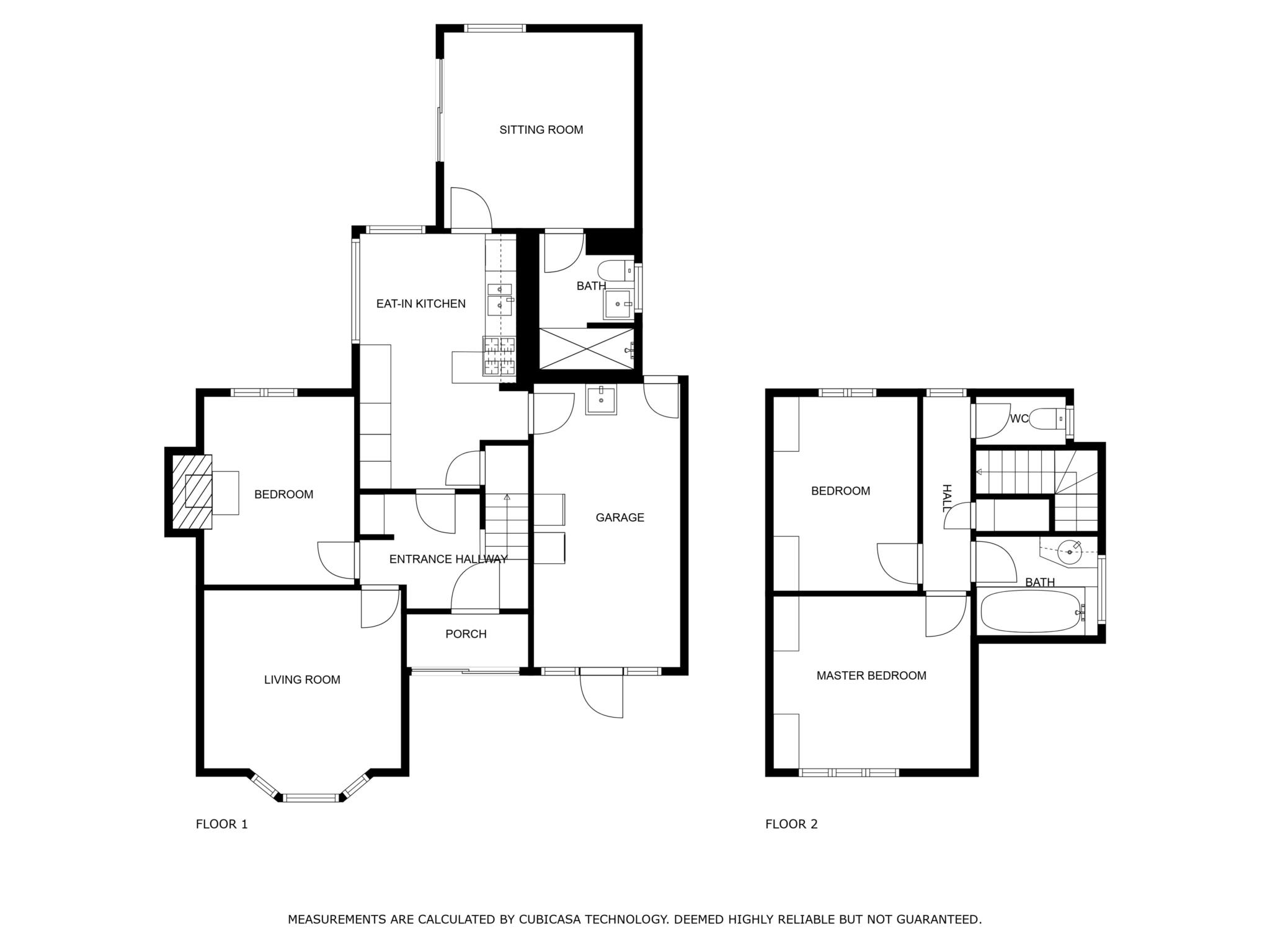 Accommodation consists of entrance hall leading to the living room facing the front of the house, a back room that can be used as a study or bedroom. Also from the hallway leading to the back of the house you step into the kitchen with a dual aspect window, from the kitchen this leads to a good size room which is part of the extension at the rear offering flexibility in space utilisation. This would make an ideal lounge area, there is also a bathroom off this room, from the this you access the garden through a sliding door that brings you out to a large garden, with grass and patio area offering lots of sun. This house has potential for a large extension out the back of the property. To the side of the house there is a large garage extending the length of the original house that also offers potential for a further extension. Upstairs there are two large double bedrooms, a shower room and separate WC.