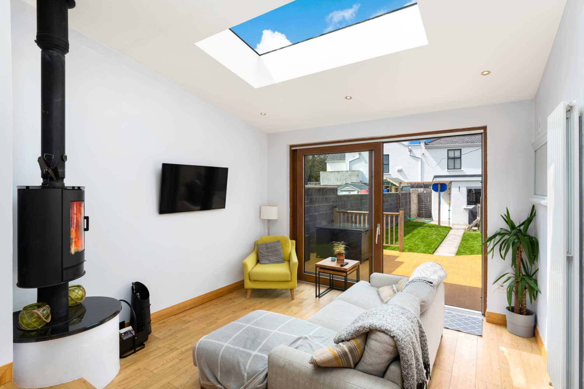 - Bright modern extension with floor to ceiling glass wall and large skylight
