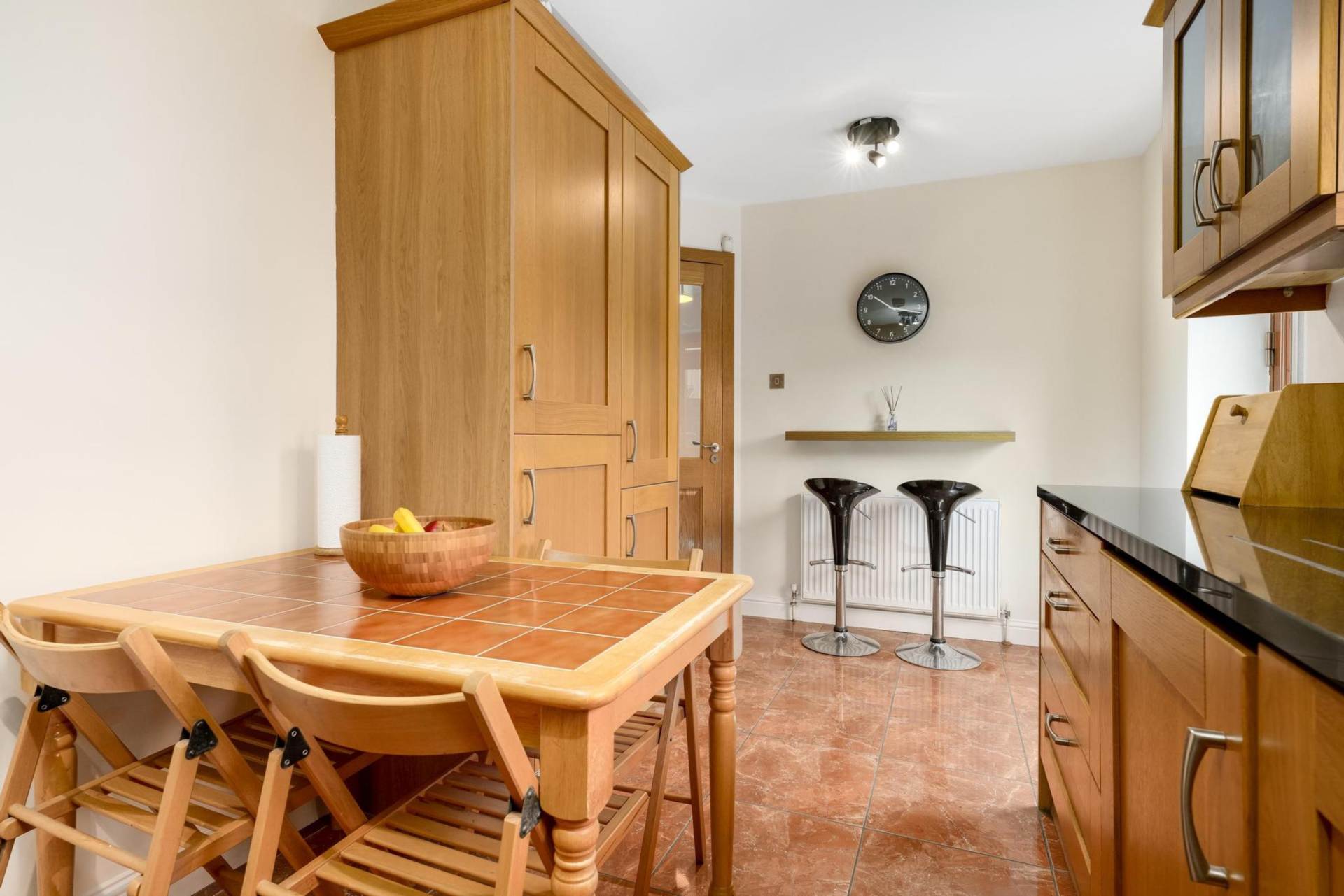 Kitchen / Dining Area: Fully equipped with ample storage, tiled flooring, and direct access to the private rear patio.