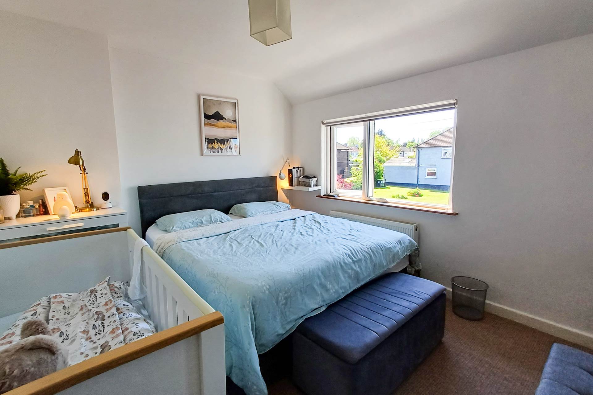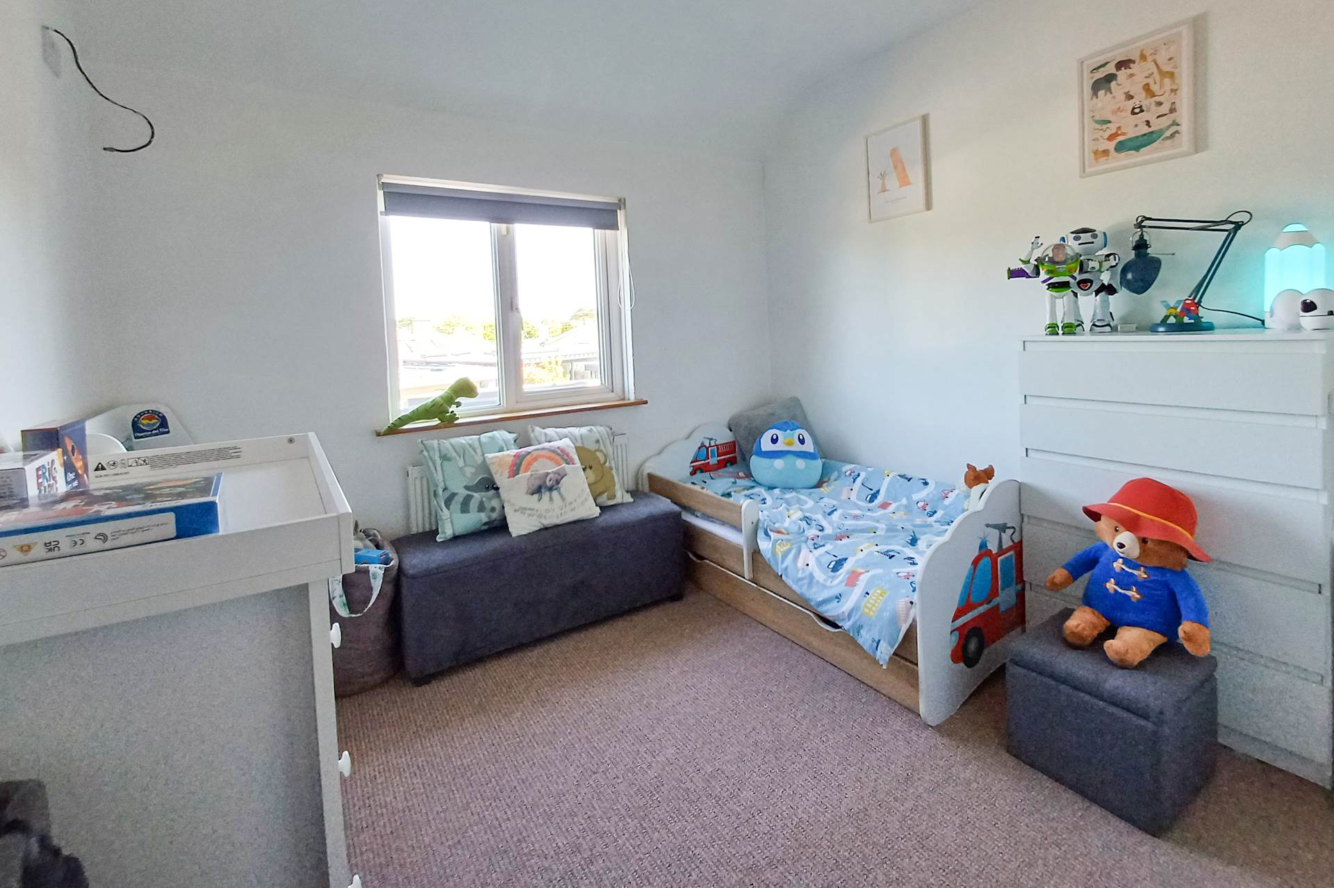Extending the full width of the house. Two windows to front. The area above the hall, by the smaller window, is currently used as a study/office area. Carpet. Blinds.