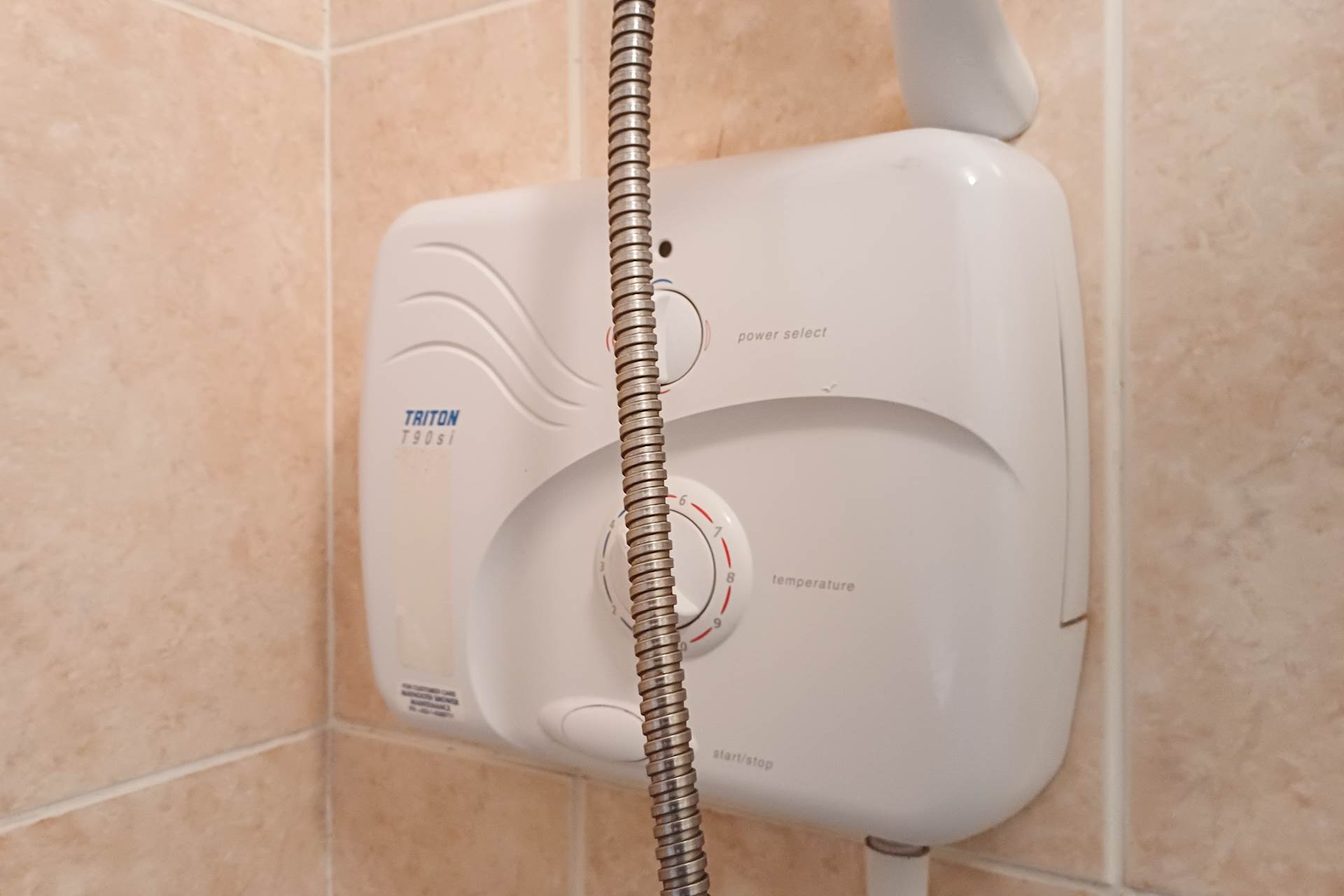 Fully tiled. Shower cubicle with triton T90si shower. WHB. WC. Small frosted glass window.
