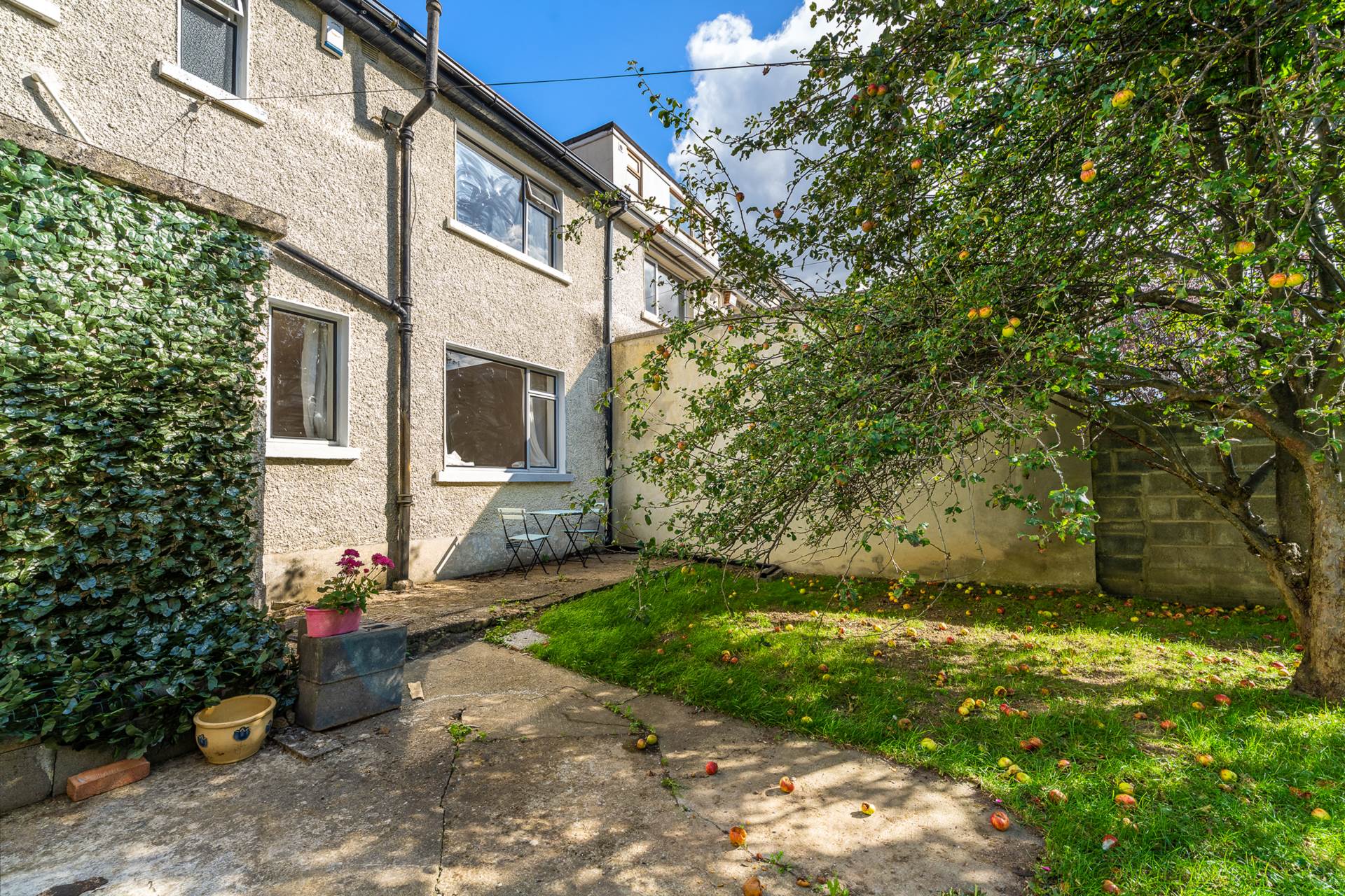 The west-facing back garden is a stand out feature, stretching out generously and featuring a large apple tree that provides a lovely focal point. The garden offers great potential for outdoor entertaining, gardening, or even expanding the house with an extension. Rear access through the back lane adds convenience.