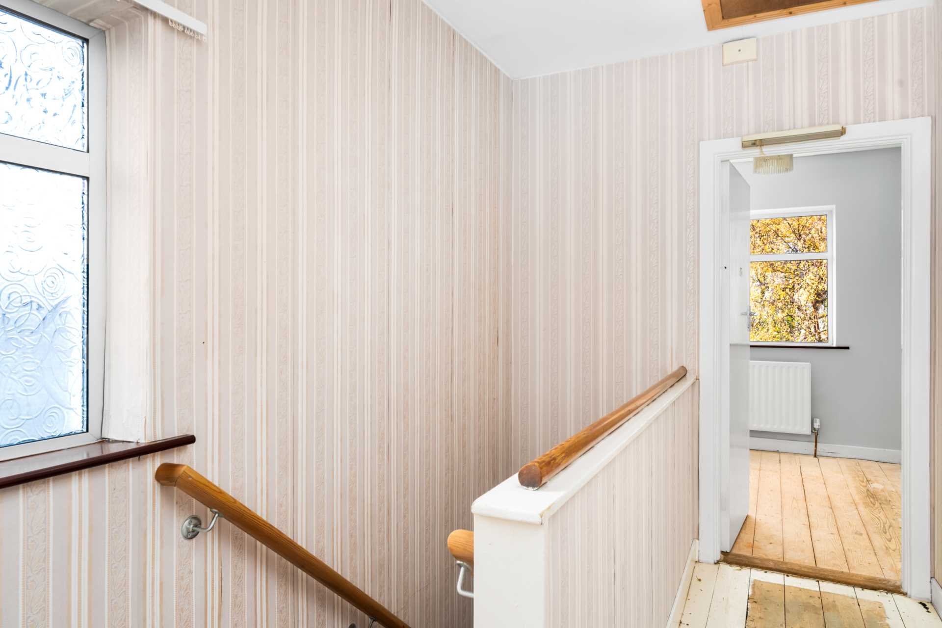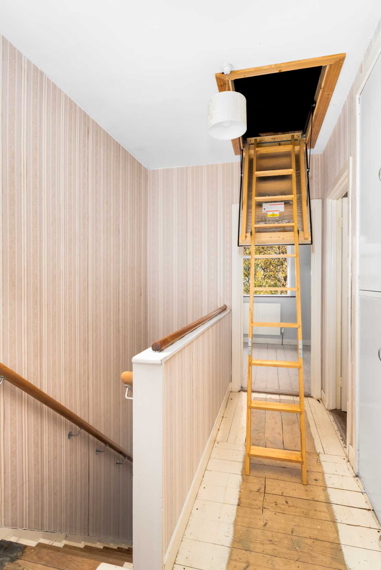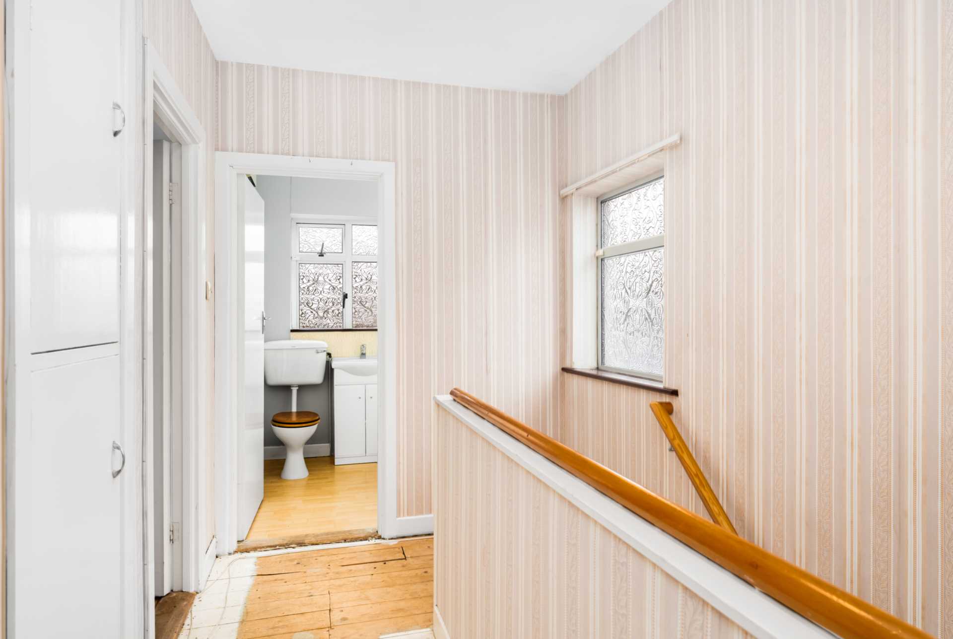 Spacious landing with window. Hot Press. Pine floorboards. Retractable Stira stairs to floored attic (apex height 2.4m).