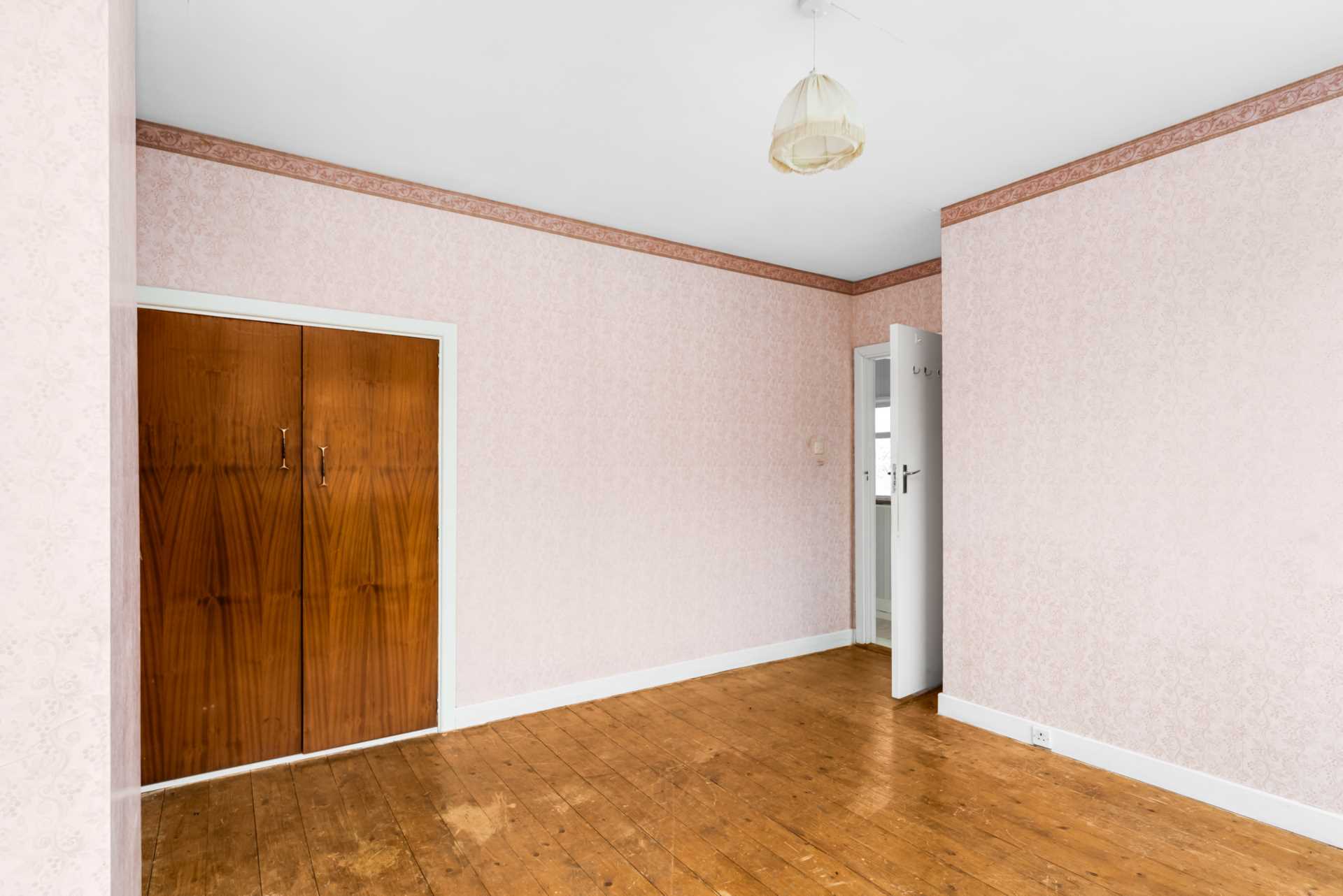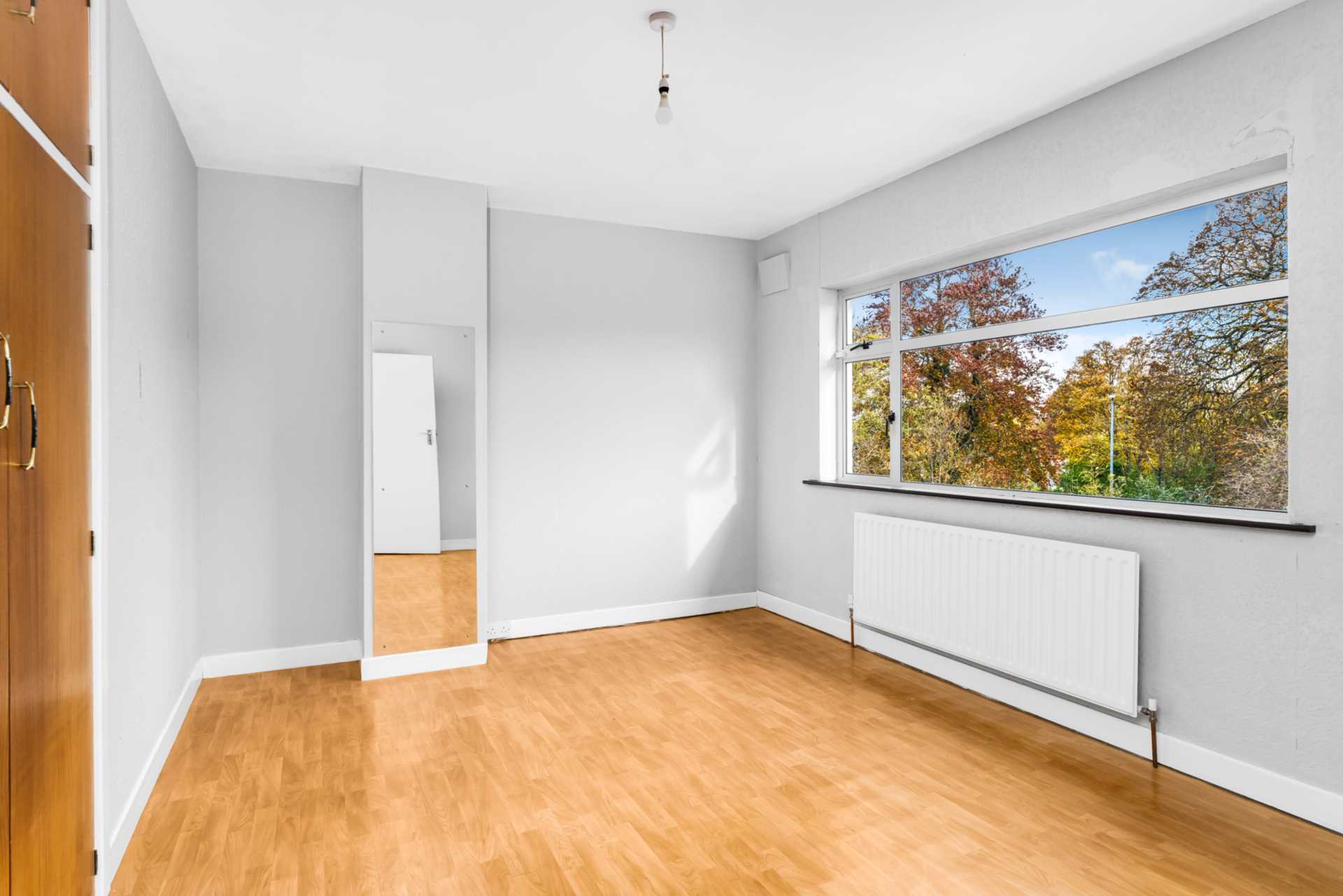 Spacious twin bedroom with a large window to rear. Recessed wardrobe. Pine floorboards.