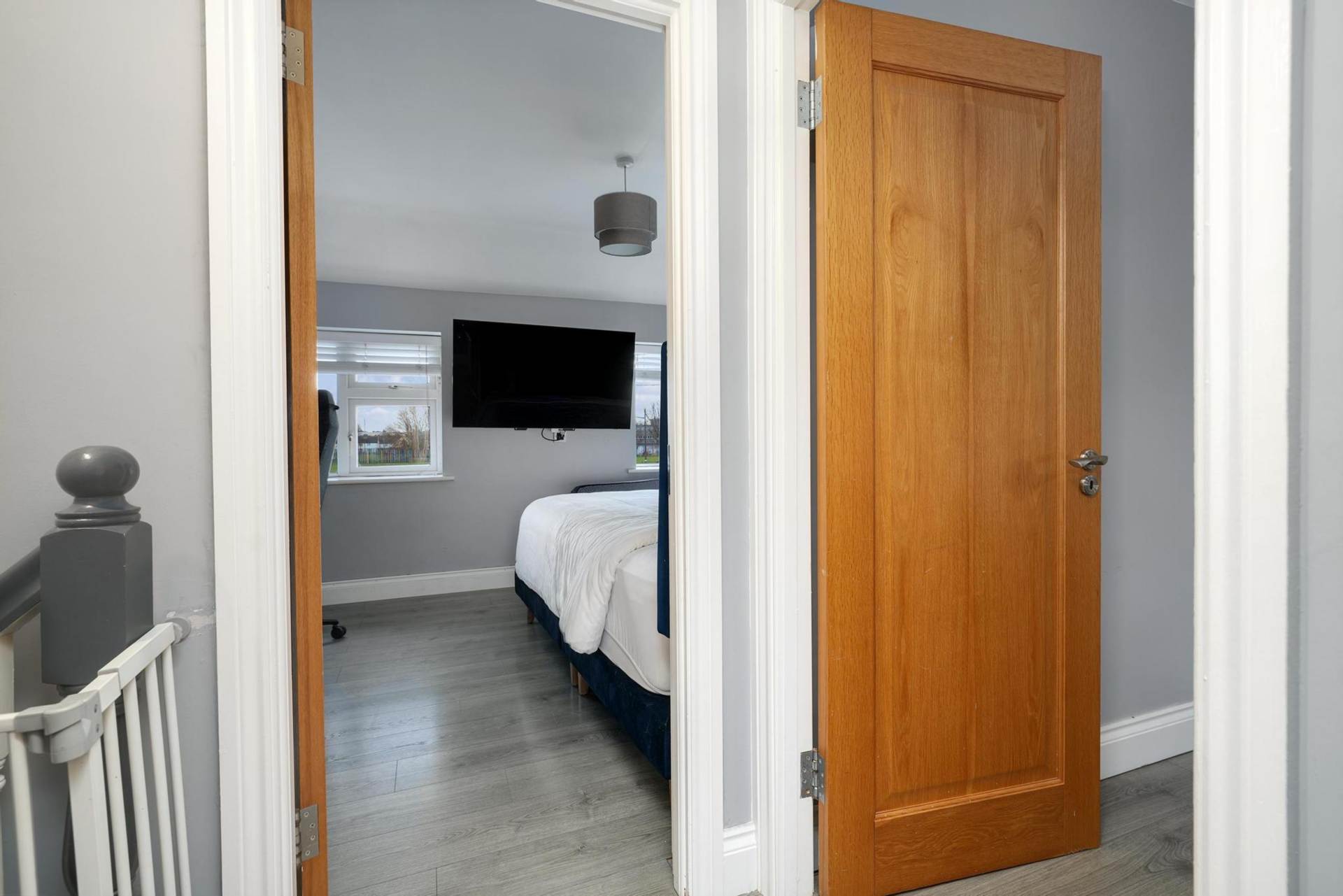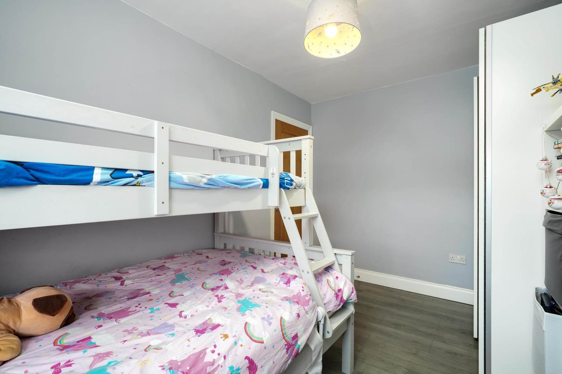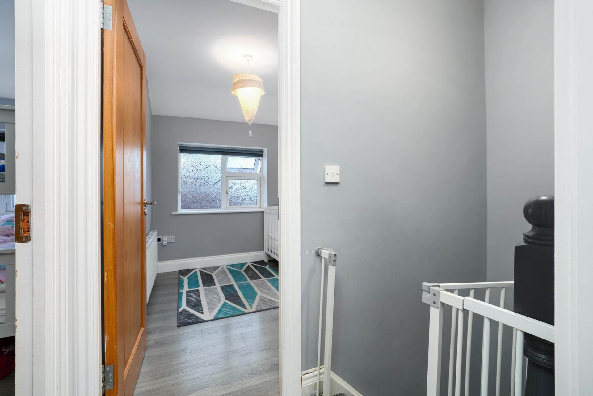 Upstairs, the property features three bedrooms, two double sized, one single sized, ideal space for a growing family .