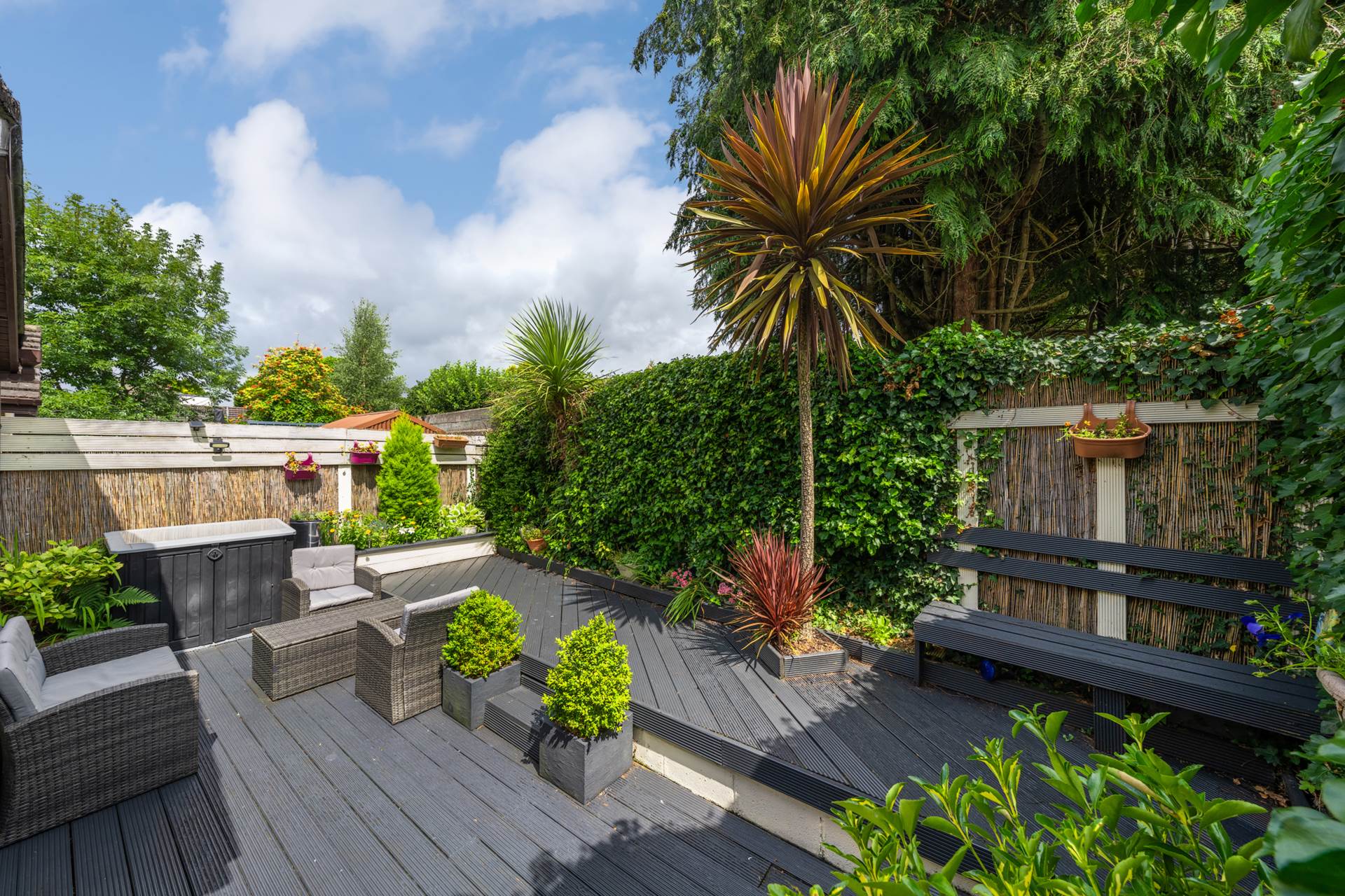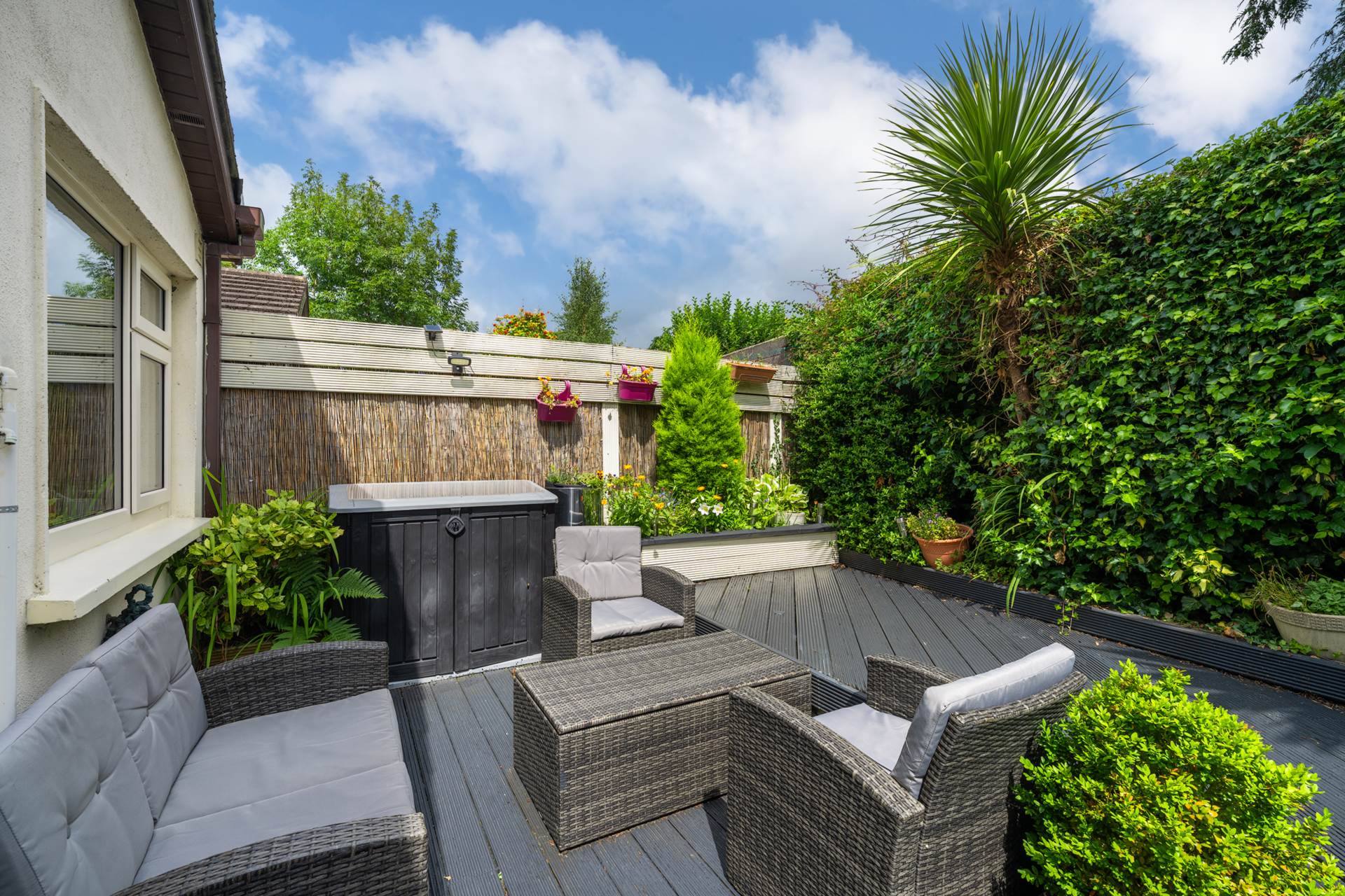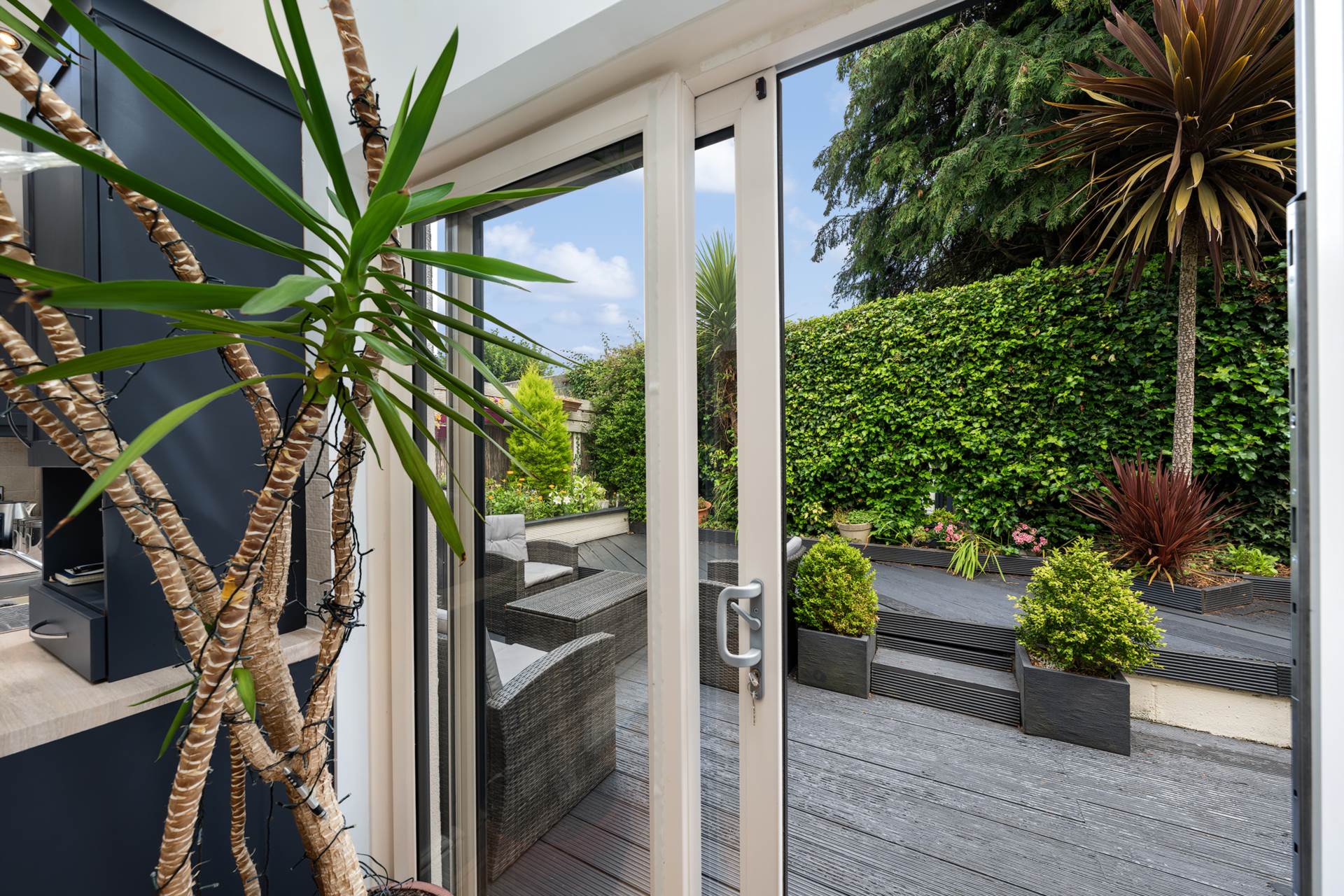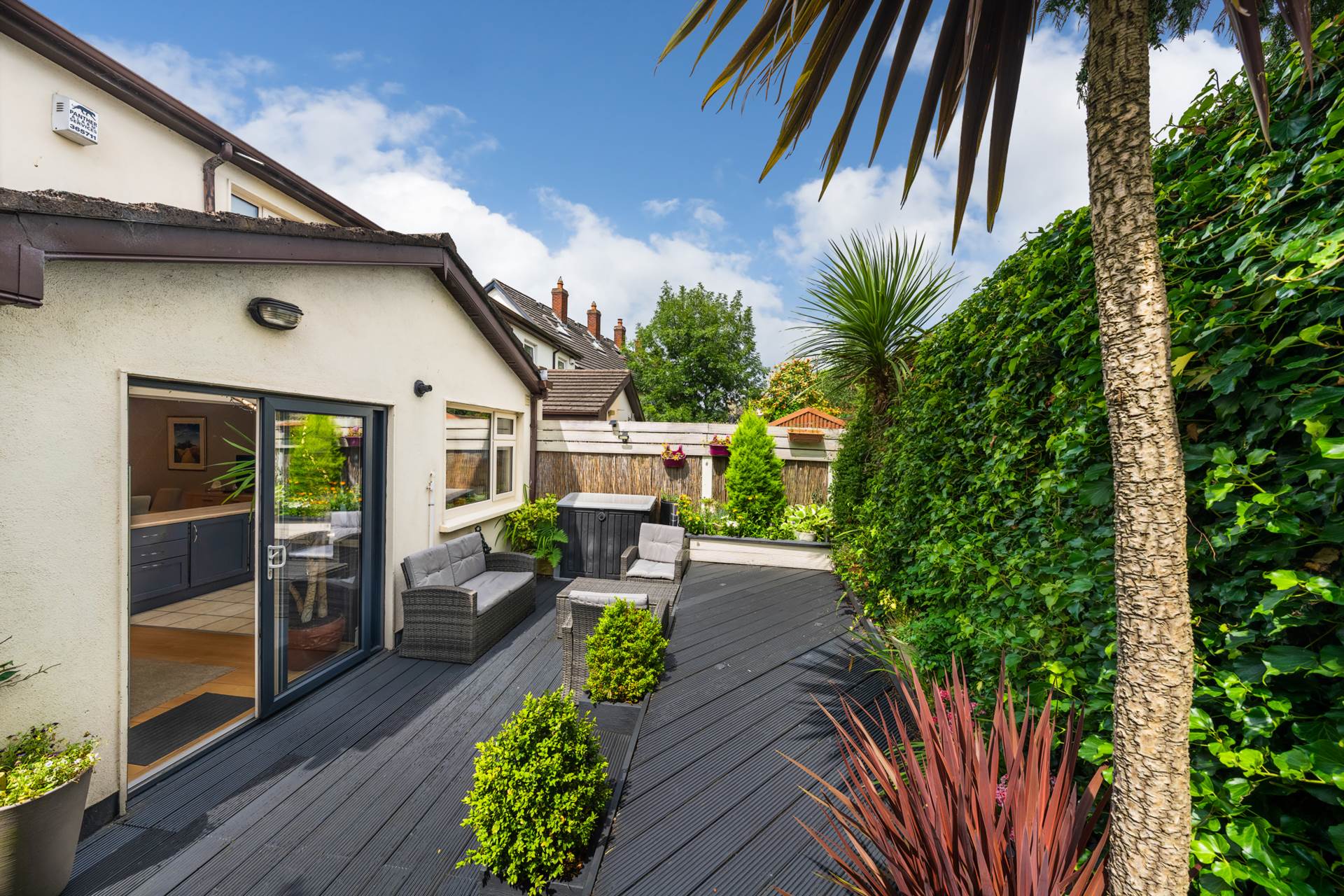 A totally private sun deck surrounded by an abundance of colourful flowers. Outside tap. Storage unit to the side. Hutch containing the clothes dryer. This is a space for sitting out in the sun. The Phoenix Park, through the gate directly across the road, has acres of space for running, playing or kicking a ball.
