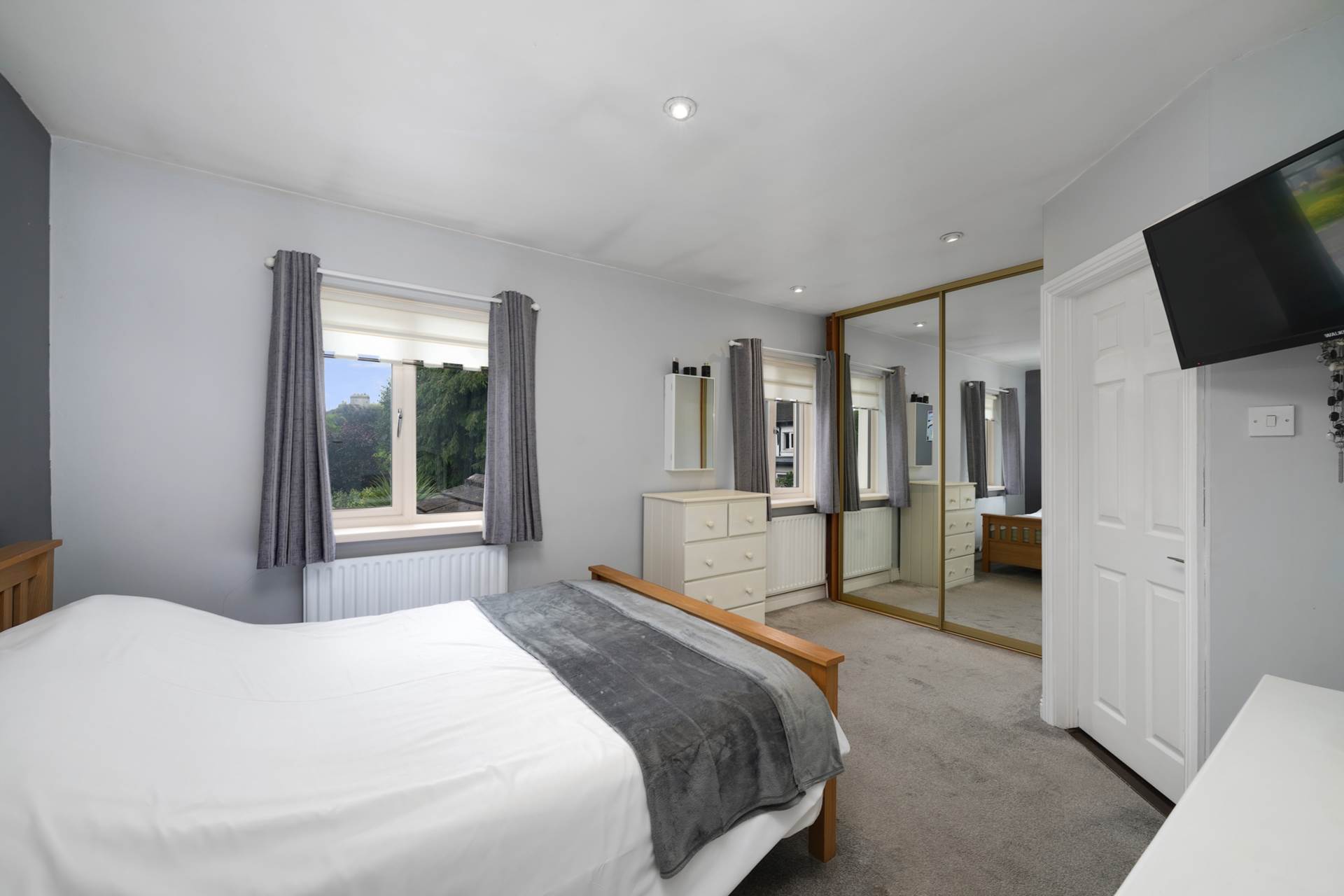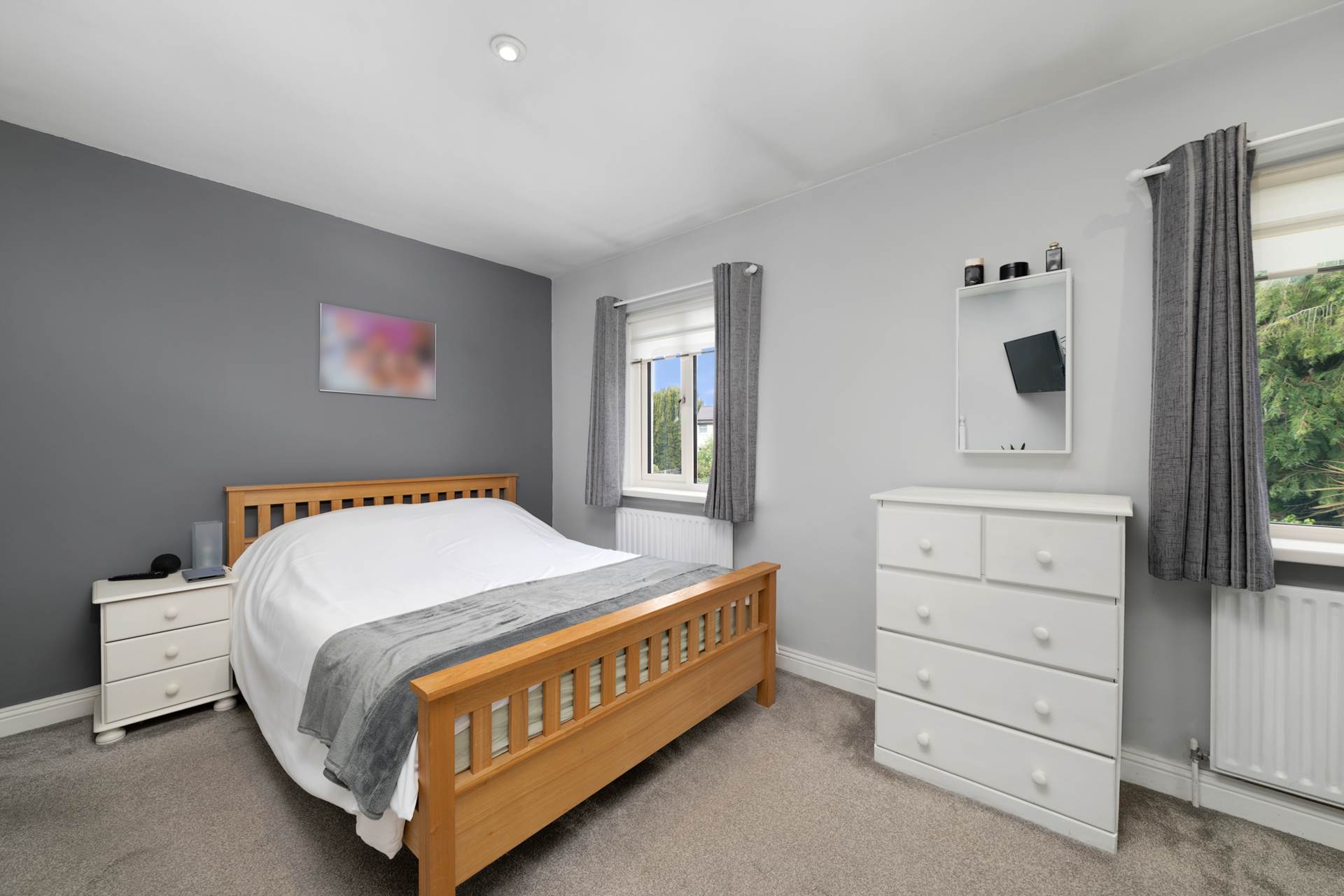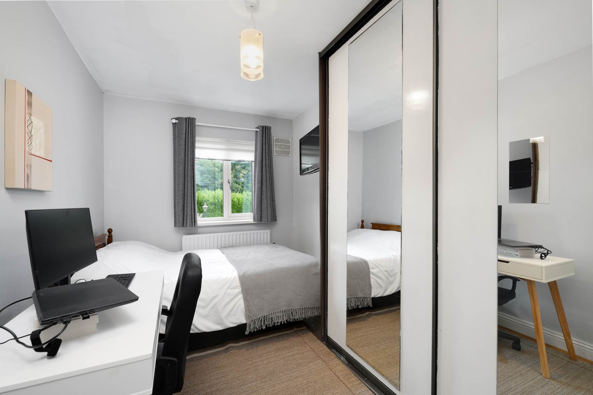 Double bedroom. Window to rear. Wood laminate flooring. Wardrobe with sliding doors. Curtains, curtain rod, blinds.