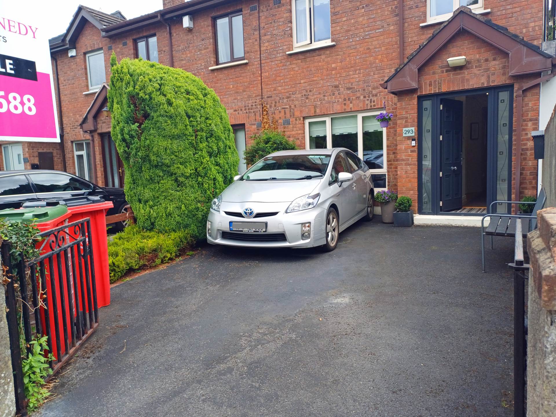 Driveway 6m wide, with off-street parking for one or two cars. To fit two cars comfortably the small tree would need to be removed. Widening the gate would also help. Bench. Wide pavement in front of house giving plenty of space between the house and the road (The current owners parked on the pavement outside the garden wall).. Lay-by with additional on-street parking. There is also abundant parking on North Road in The Phoenix Park - just the other side of the pedestrian turnstile gate.