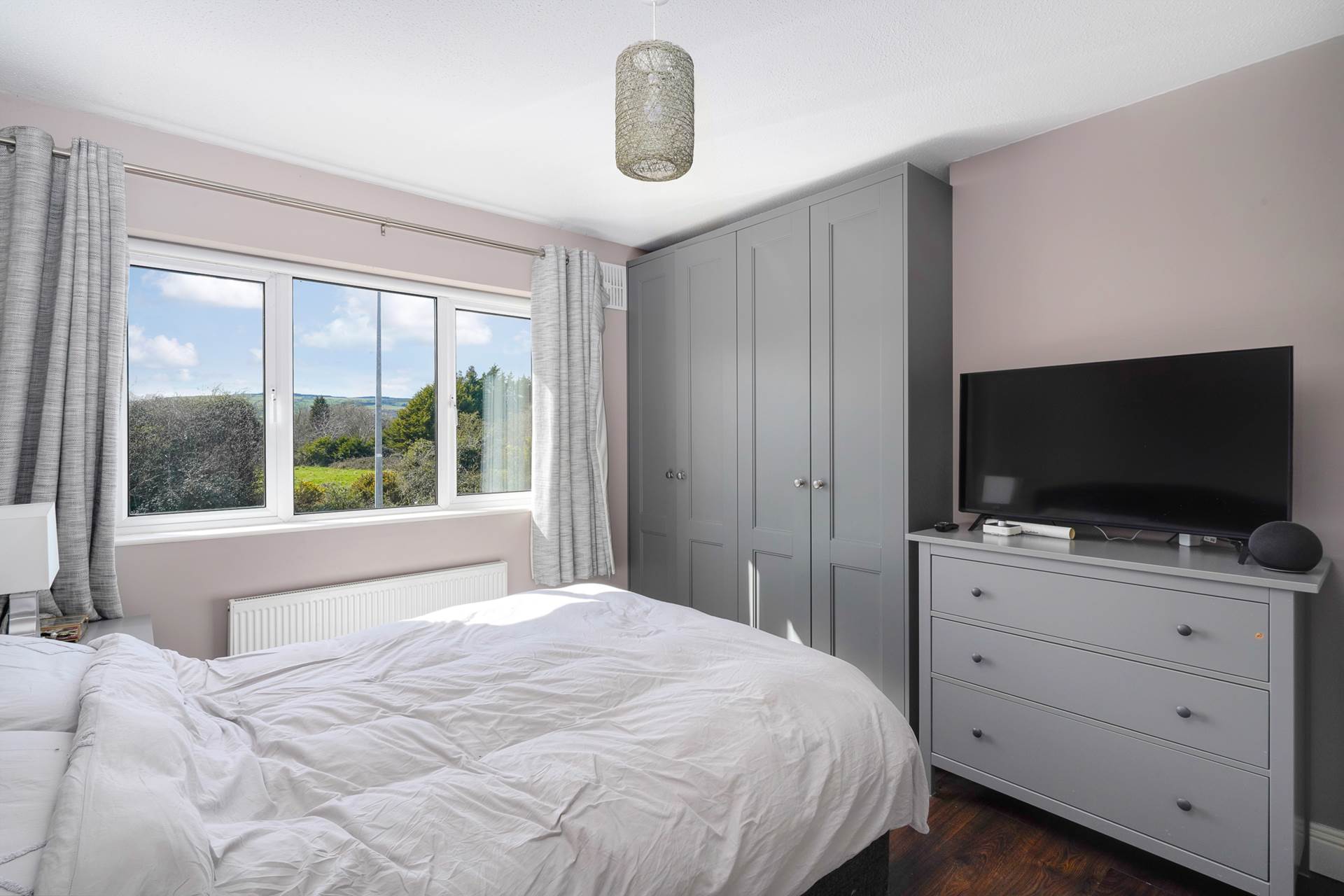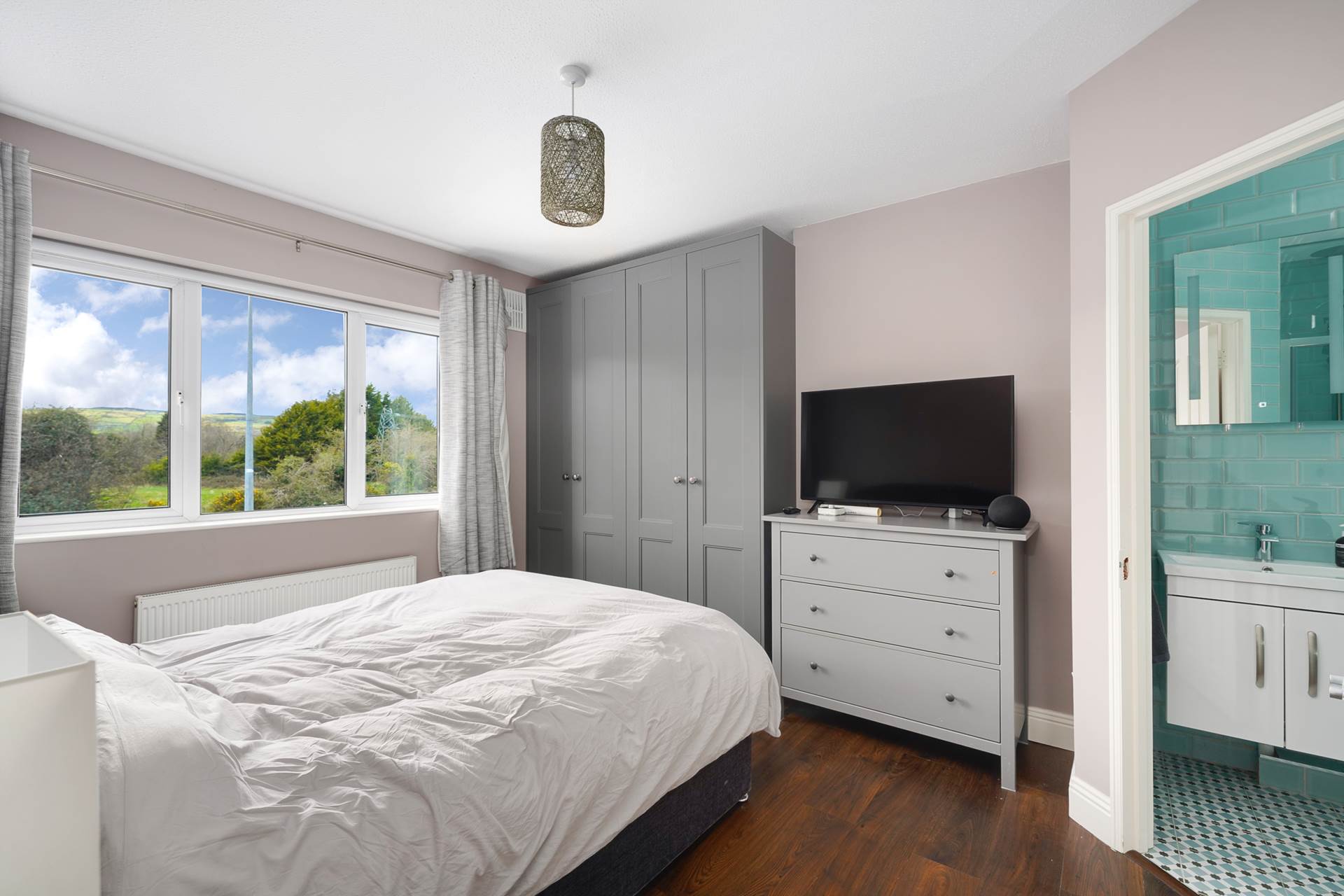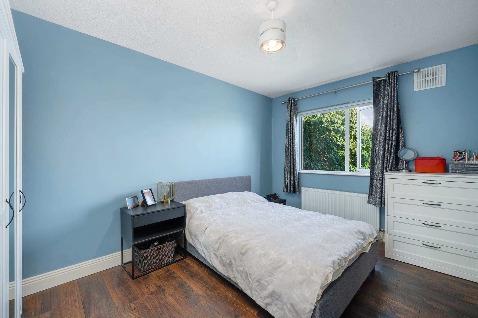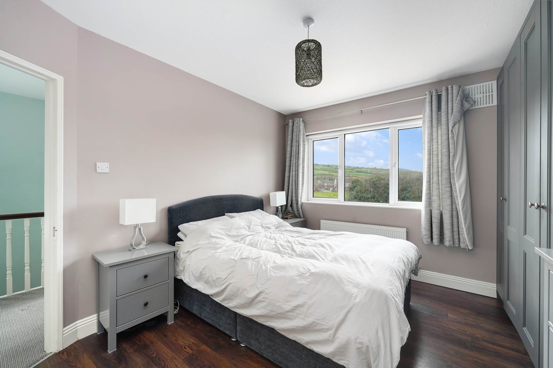 Fitted wardrobe. Wood effect flooring. Large window. Curtains and curtain rod. Door to ensuite.