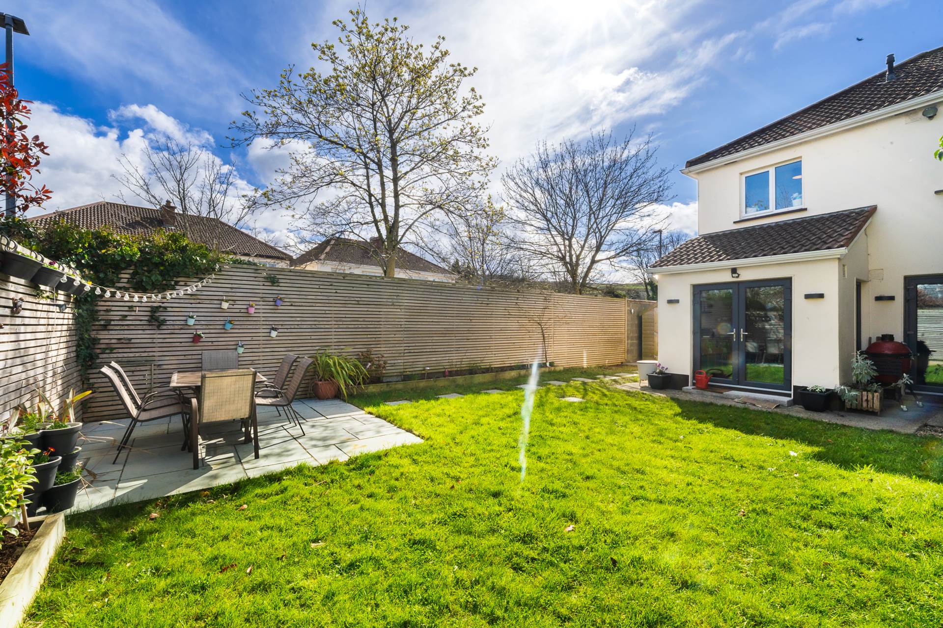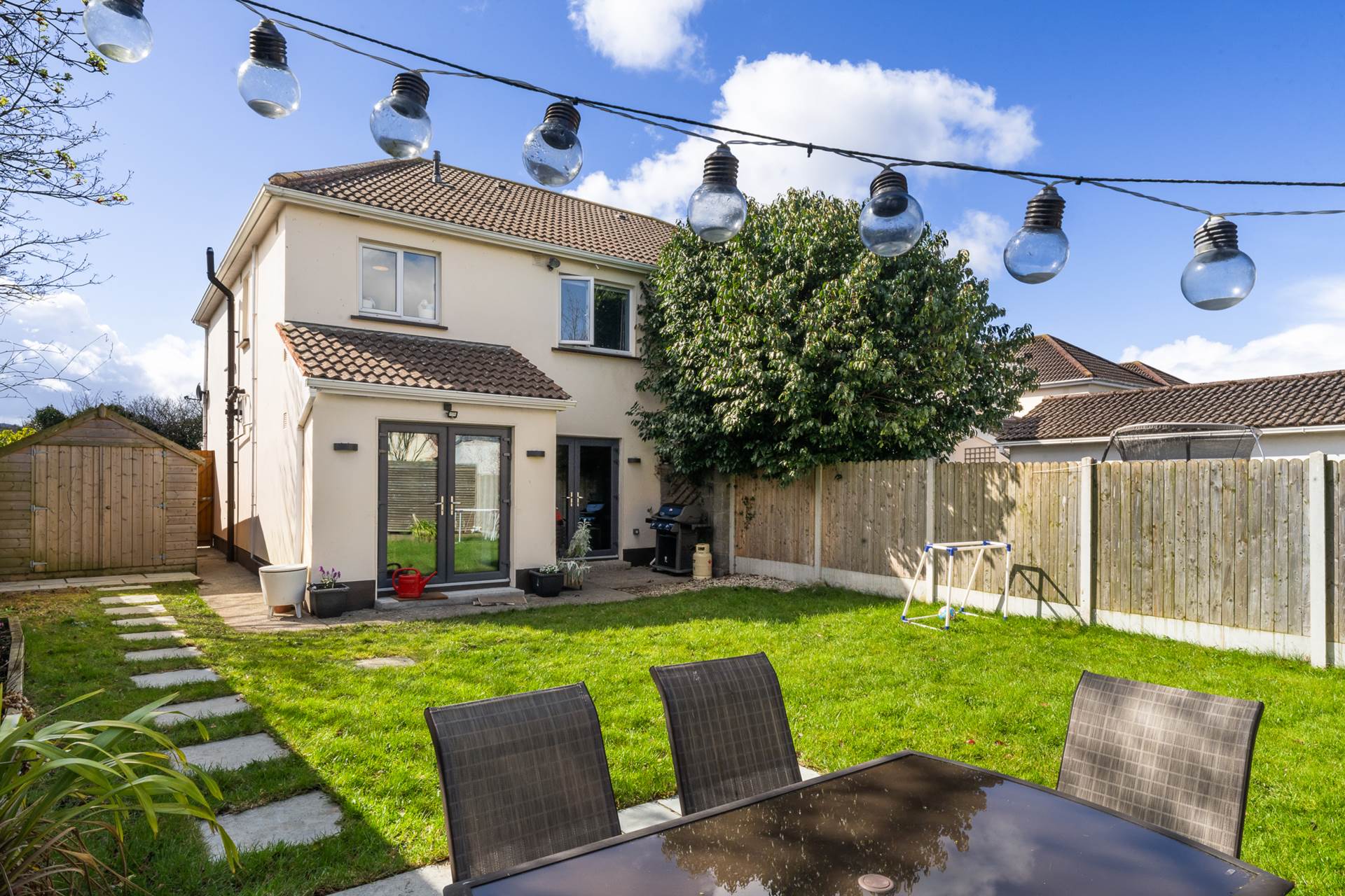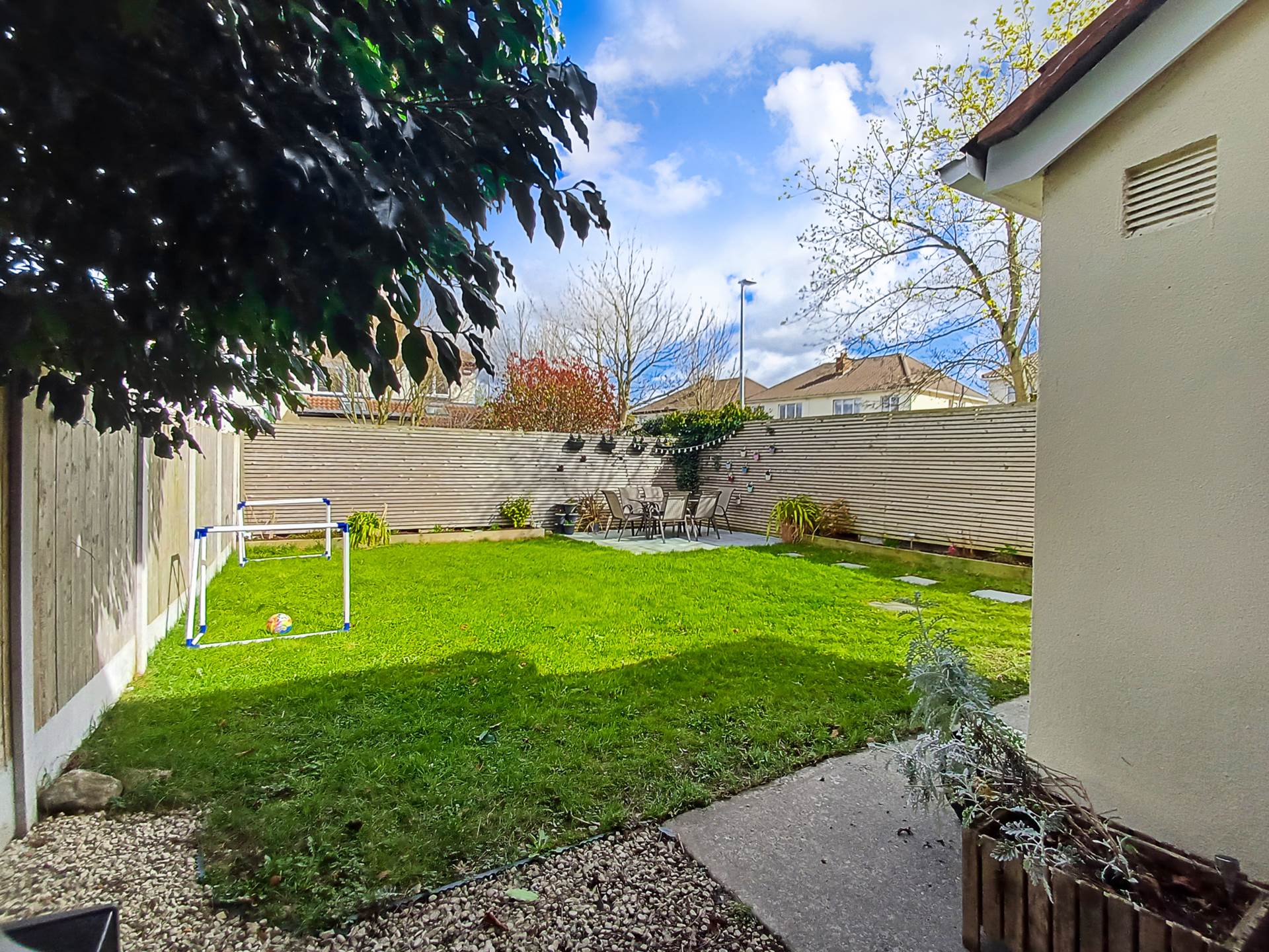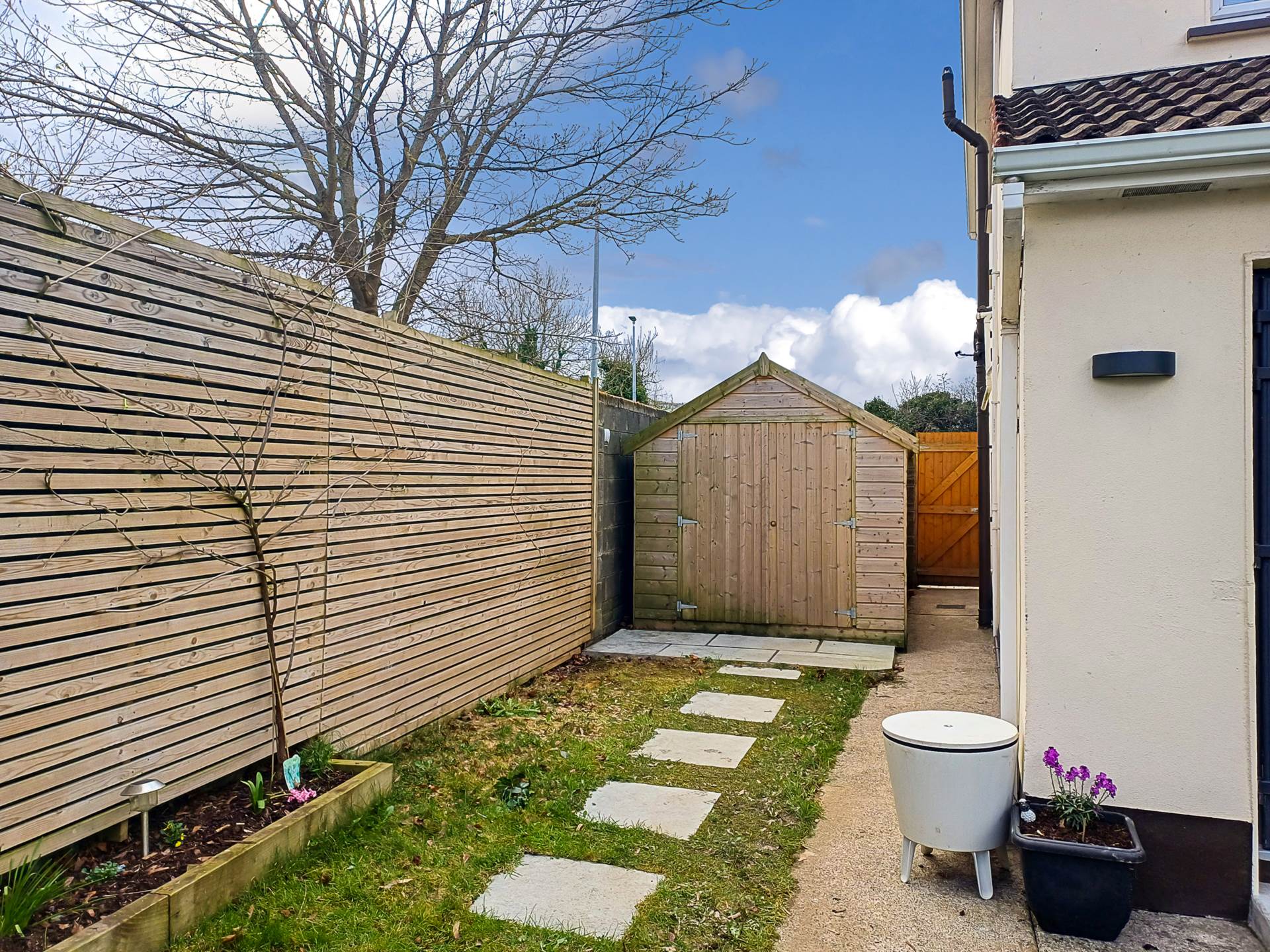 As a corner plot this property has a good spacious back garden most of which is laid out in lawn, with a white granite paved sun patio in the bottom corner - getting excellent sunlight. Side garden approximately 3m wide with garden shed. Side gate.