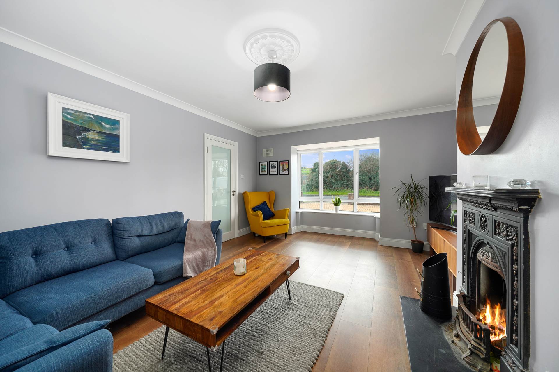 This has a lovely bay window with expansive views of The Hellfire Club. A feature cast iron fireplace with a black slate hearth forms a warm focal point in the evenings. Coving and centre rose, give this room a luxurious feel.