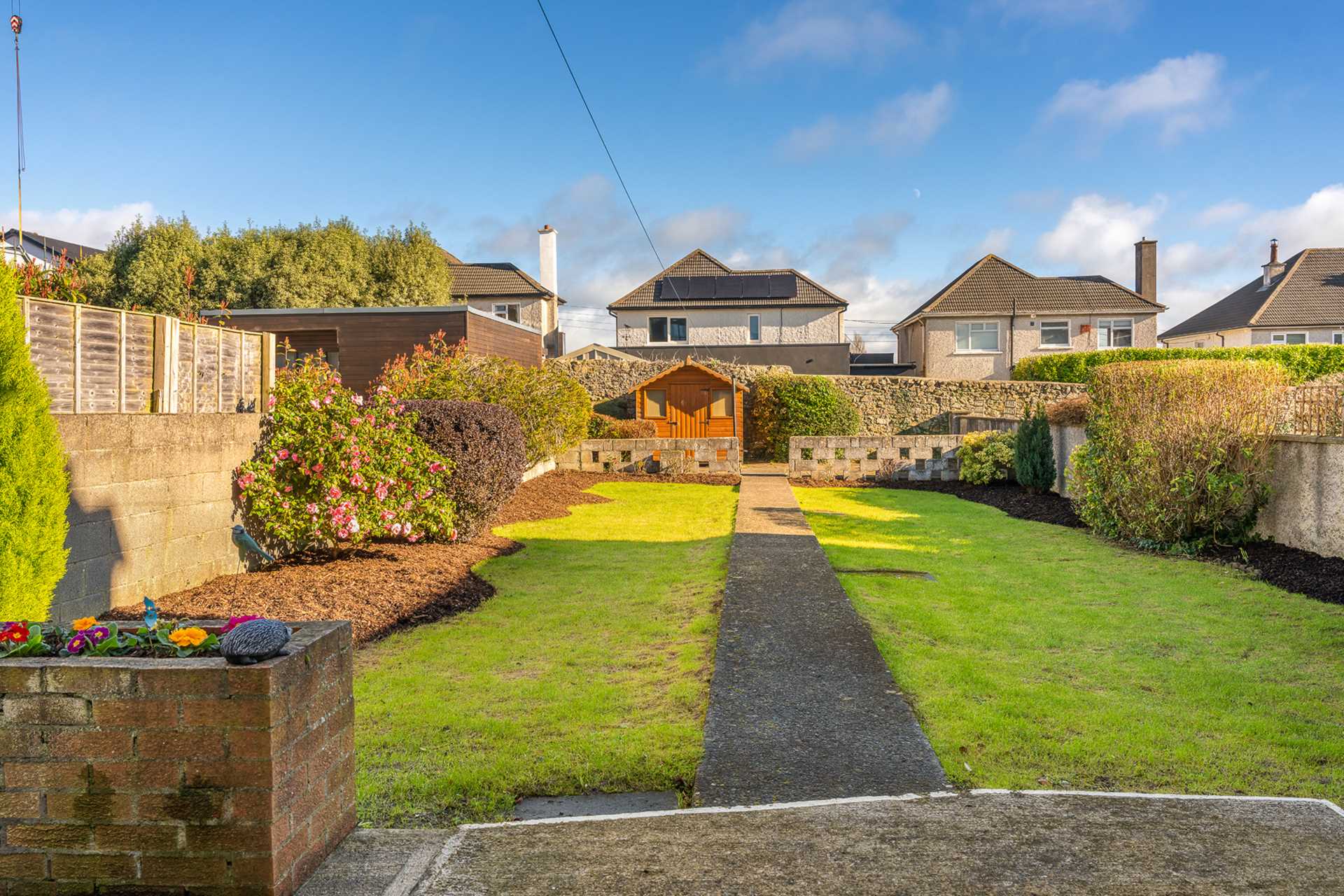 The delightful and tidy, easterly facing, back garden measures approximately 28m/90ft x 10m/32ft. There is a side access passage. At this time of year it features a beautify pink flowering camelia. At the end of the garden is a sun patio and garden shed, backed by the historic granite wall which used to surround the Pembroke Estate. This garden is open to the south giving excellent natural sunshine throughout the whole day.