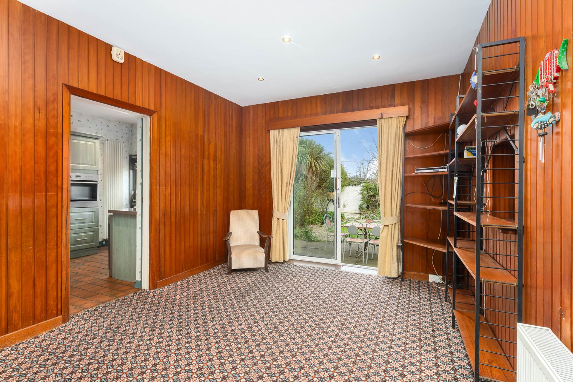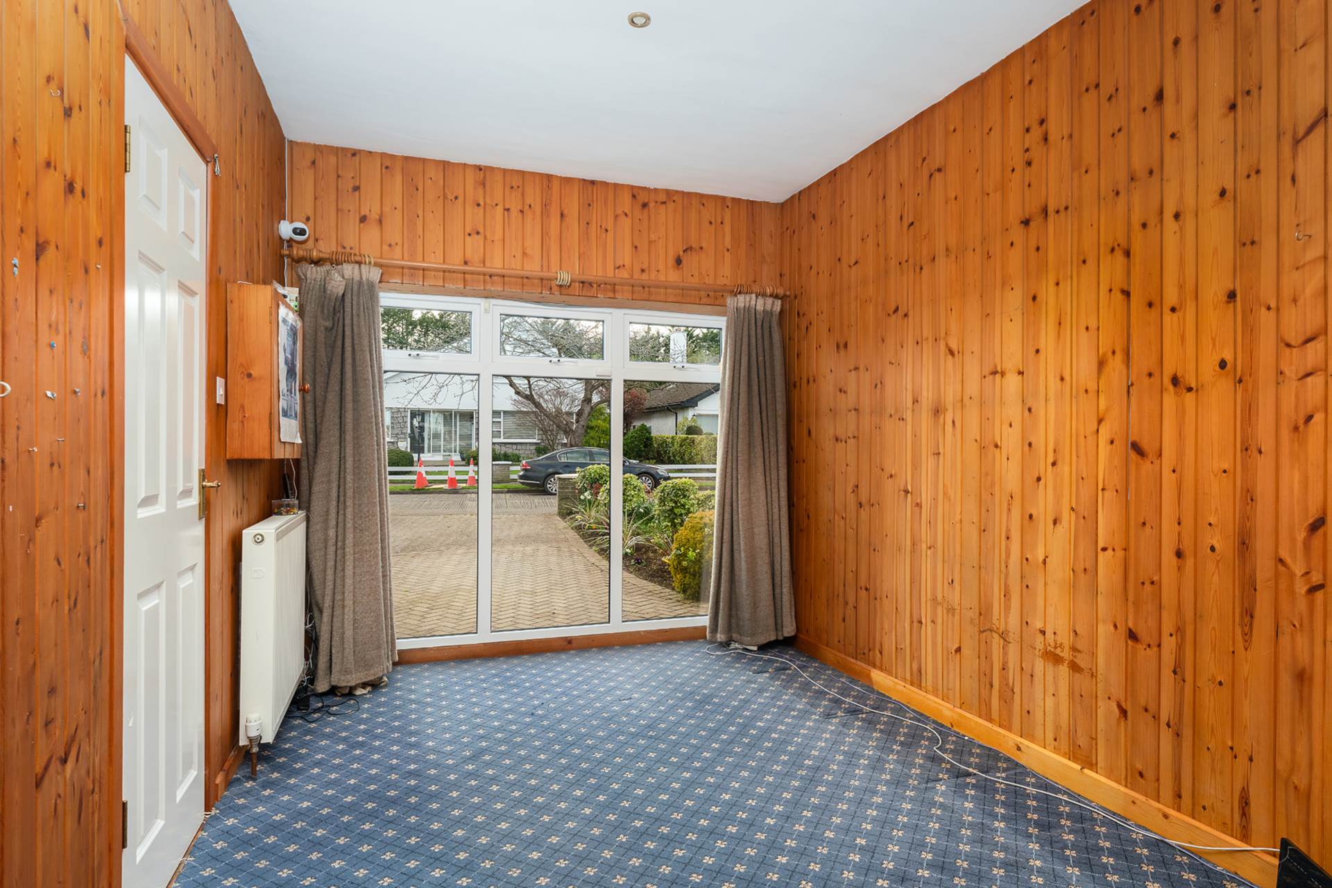 This was originally designed to be the kitchen, with the current kitchen as the utility room. Wood panelling. Patio doors to back garden. Recessed lighting. Window to hall.