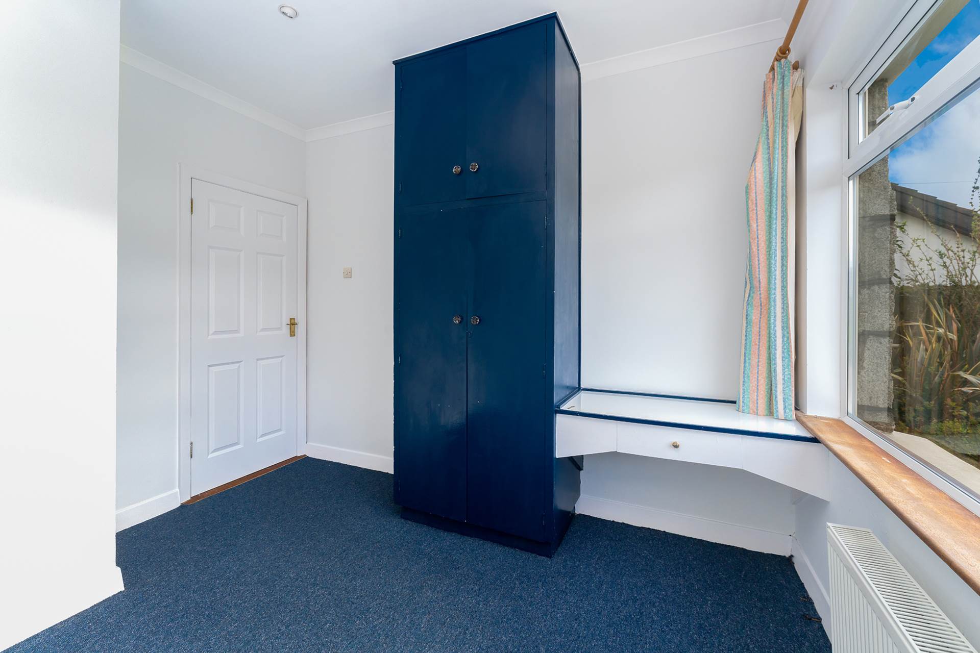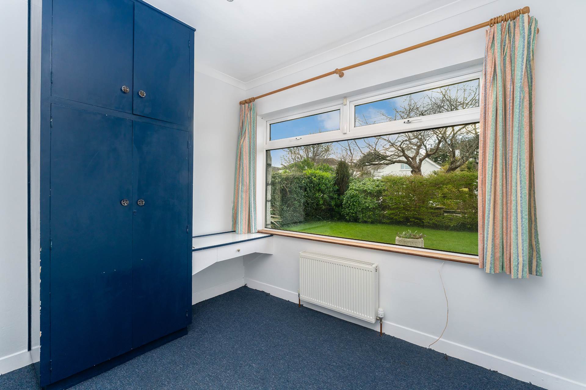 Spacious double bedroom. Fitted wardrobe. Coving. Recessed lighting. large window. Curtains and curtain rod. This is a dormer bedroom on the south east side of the house.