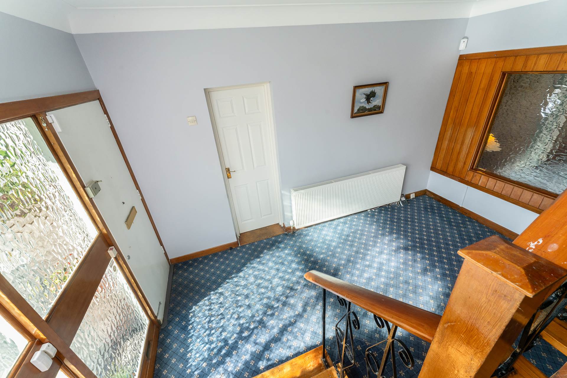 Bright and spacious hallway with full-width windows to the front porch.Open oak staircase with oak handrail. Recessed lighting. Coving.