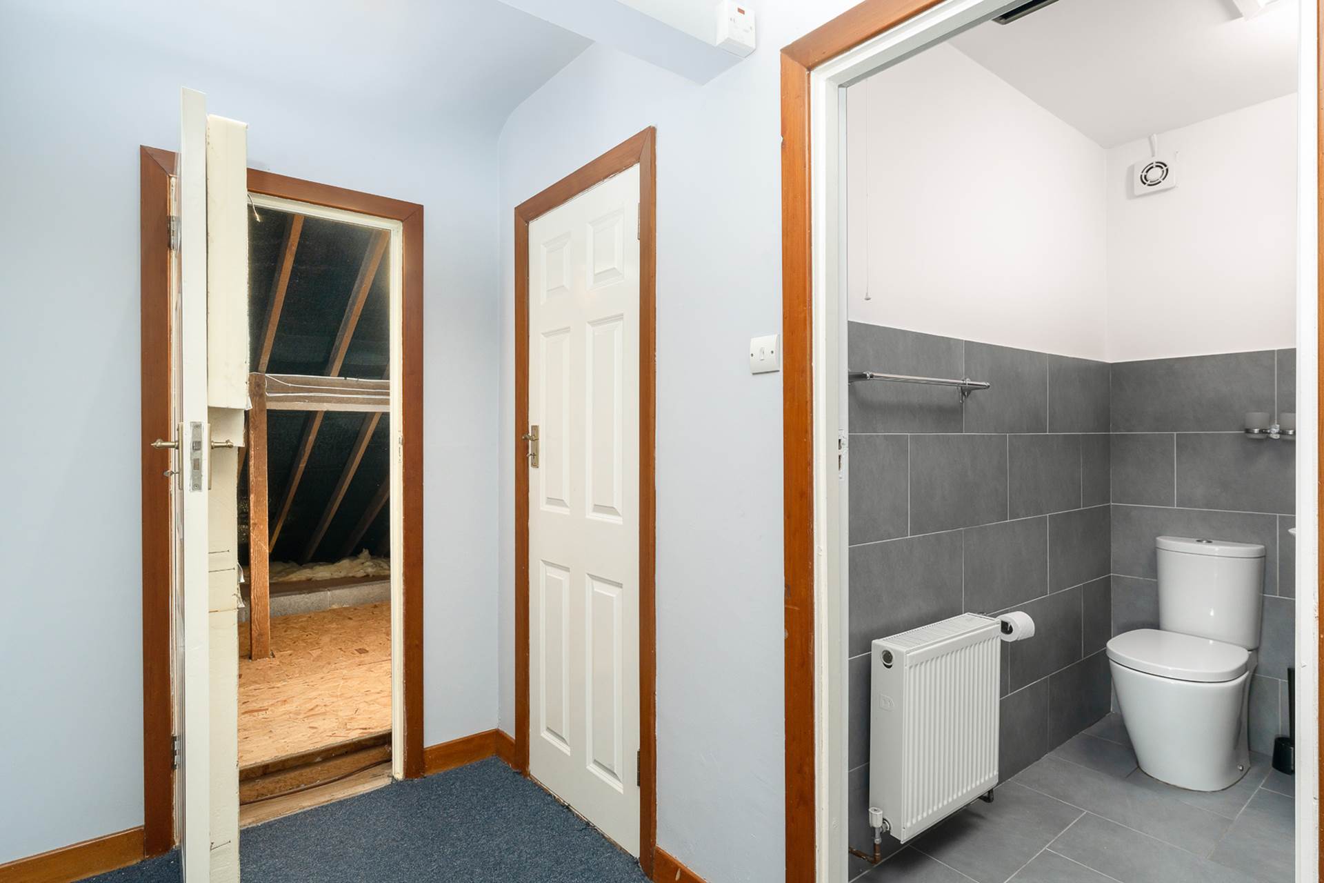 A door from the landing opens to extensive eaves storage on the northern pitch of the roof.This space has a ceiling height reducing from 2.2m high to 0. It has a width of 2.15m with ceiling height of 1.2m plus.