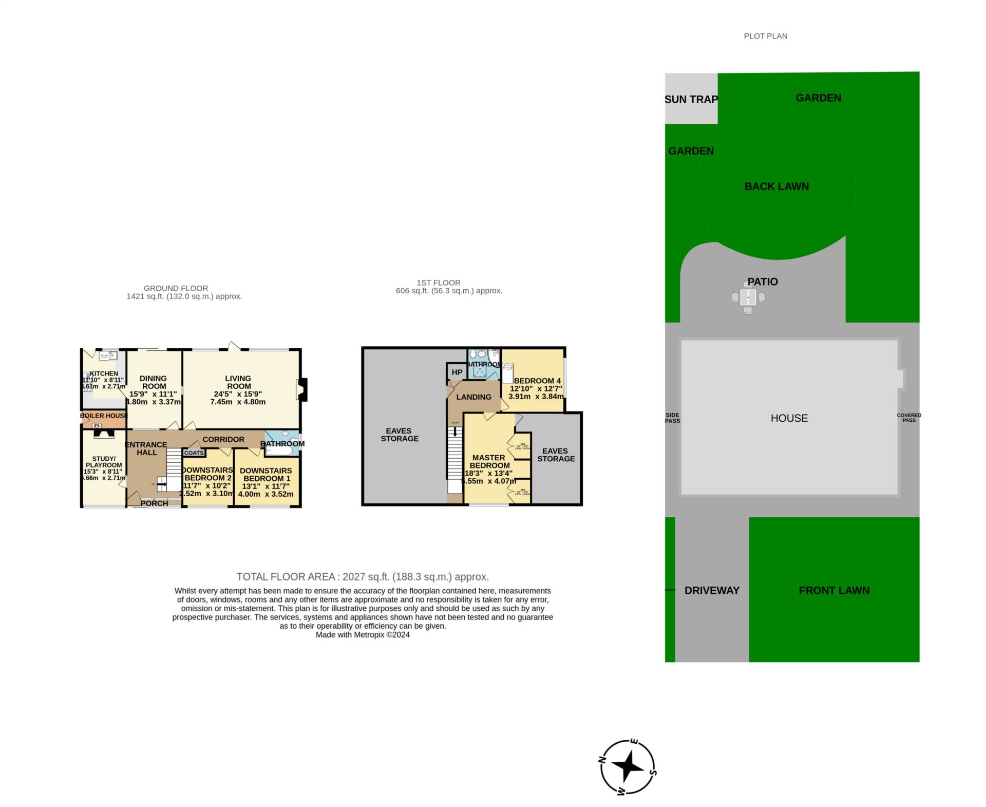 This property benefits from bedrooms and bathrooms on both levels. On the ground floor there is a bright and spacious entrance hall. Off this is a garage conversion room currently used as a study. To the rear are three rooms, the exceptionally large and bright living room, a kitchen and a dining room. To the front are two spacious double bedrooms. At the end of the hall is the downstairs family bathroom. Upstairs there are two more very spacious double bedrooms and a modern shower room. There is also very generous eaves space for storage or conversion to additional dormer rooms (S.P.P.).