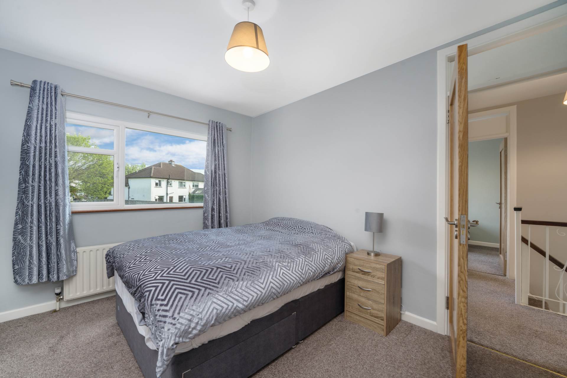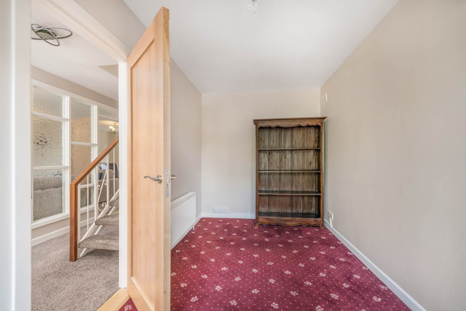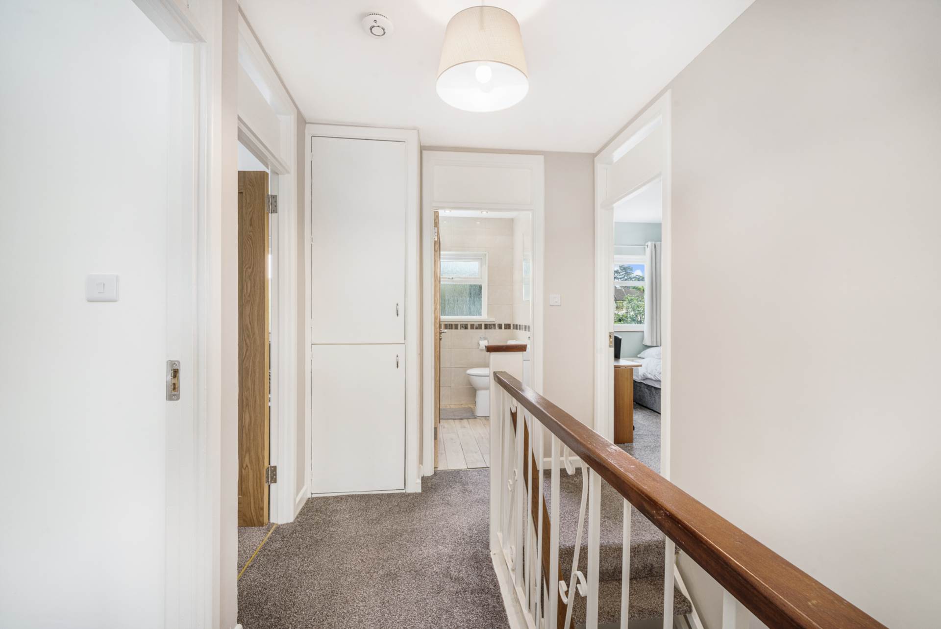 Carpeted stairs and landing. Hot press. Attic access hatch.