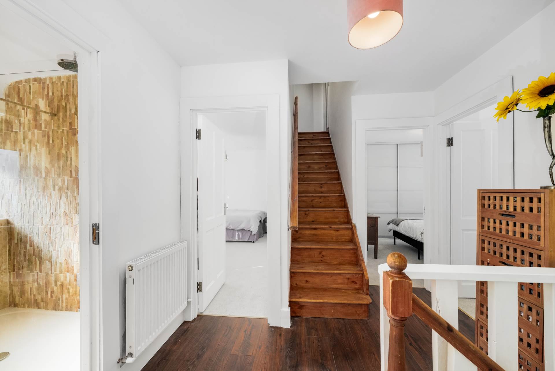 This property comprises two distinct living spaces each with their own kitchens, bedrooms and recreation rooms, In the main house the living room has Japanese style sliding doors leading to a modern kitchen that boasts full sliding back doors that lead to the decking area out to the back south westerly garden, ideal area for both relaxing and entertaining guests. Upstairs are four bedrooms and two bathrooms. The main bedroom in the extension has a partitioned dressing room/nursery area to the rear. The home also benefits from a stairs to the attic, which is floored, insulated and ready for conversion.