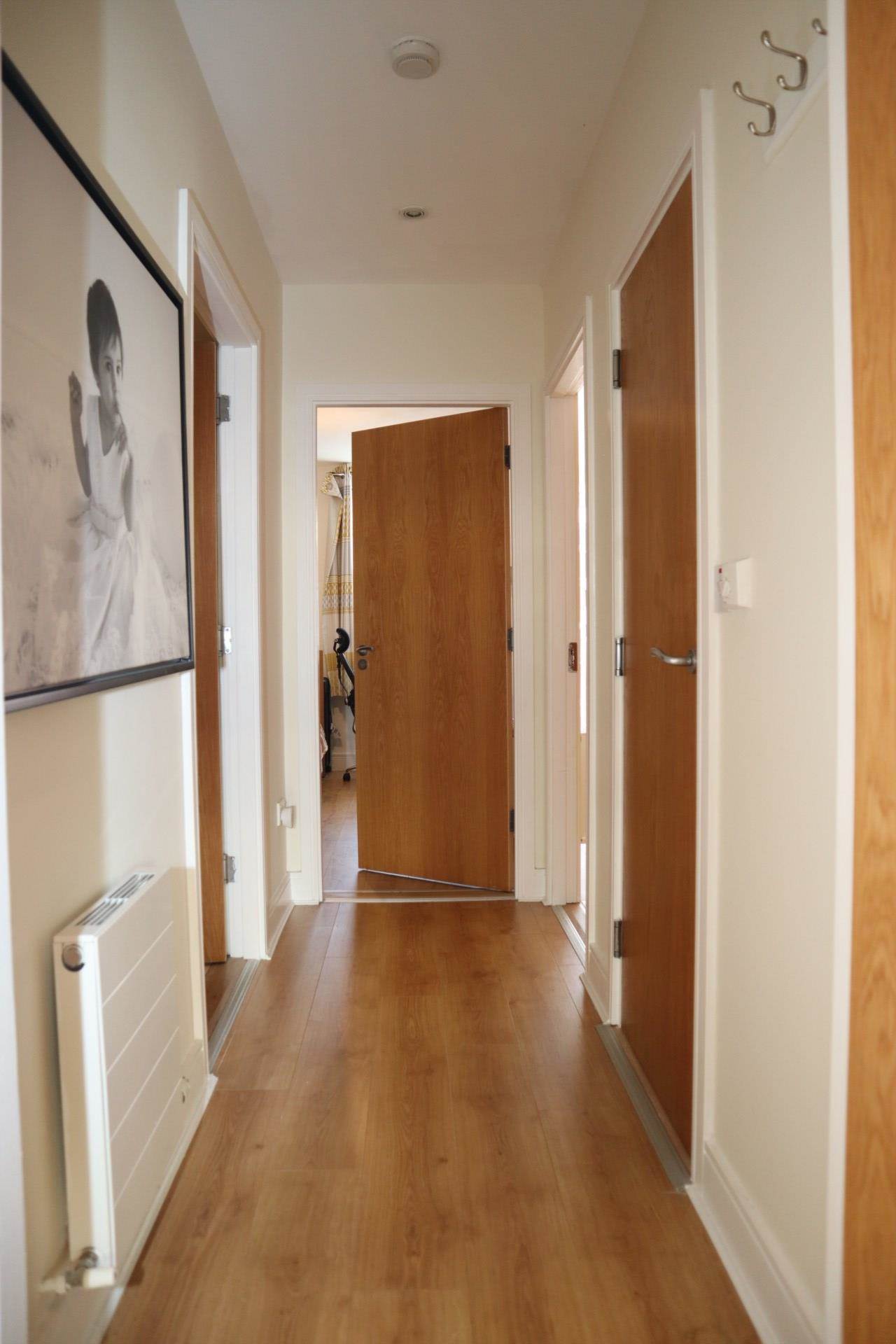Leading to bedrooms and bathrooms. Wood laminate flooring. Hot press with high capacity water cylinder.