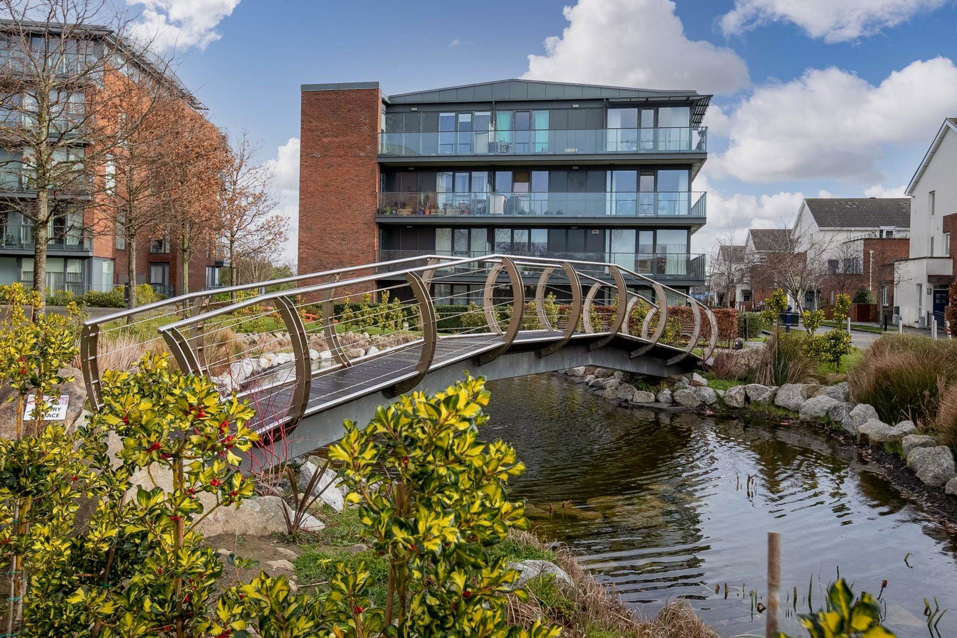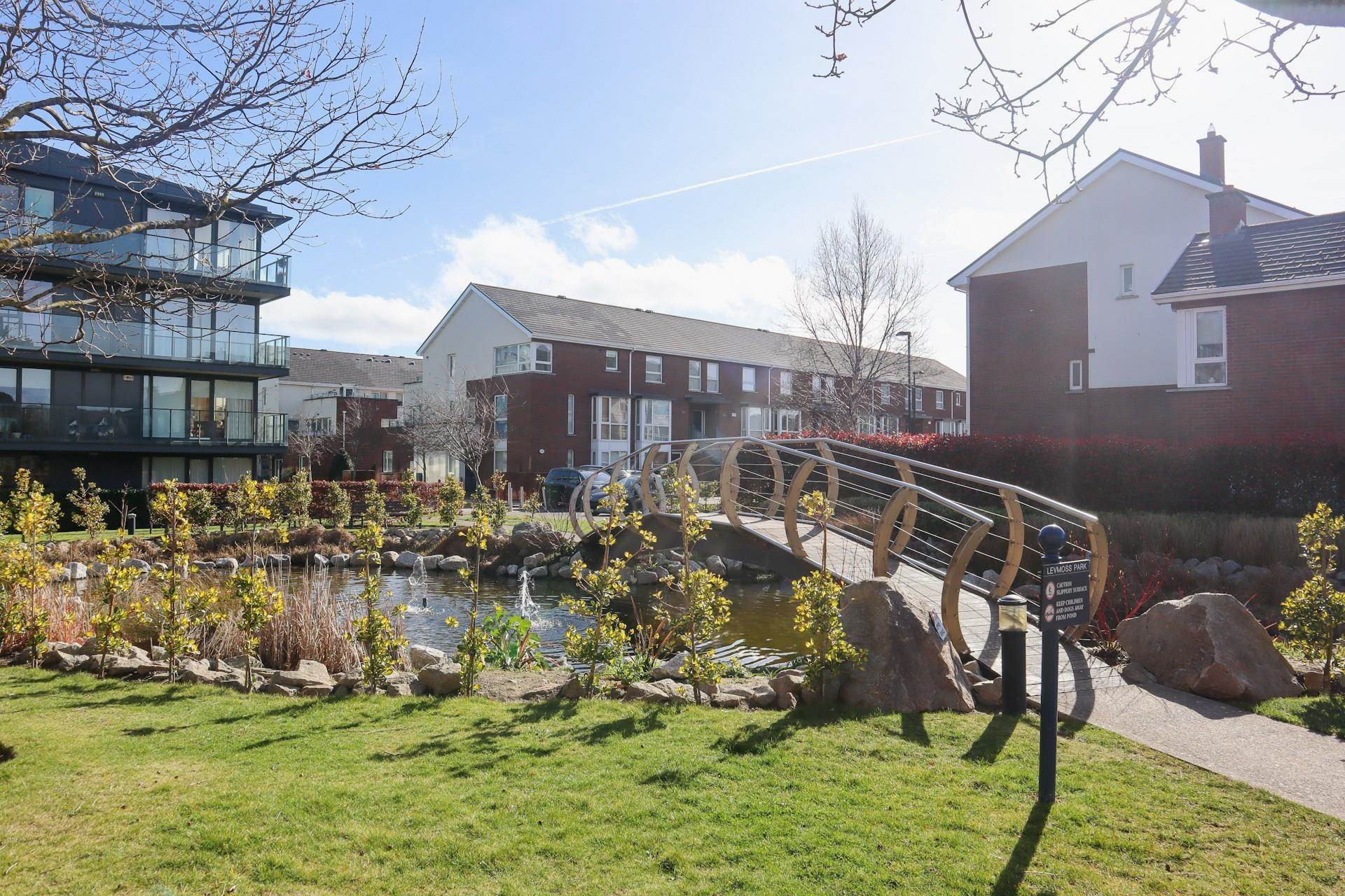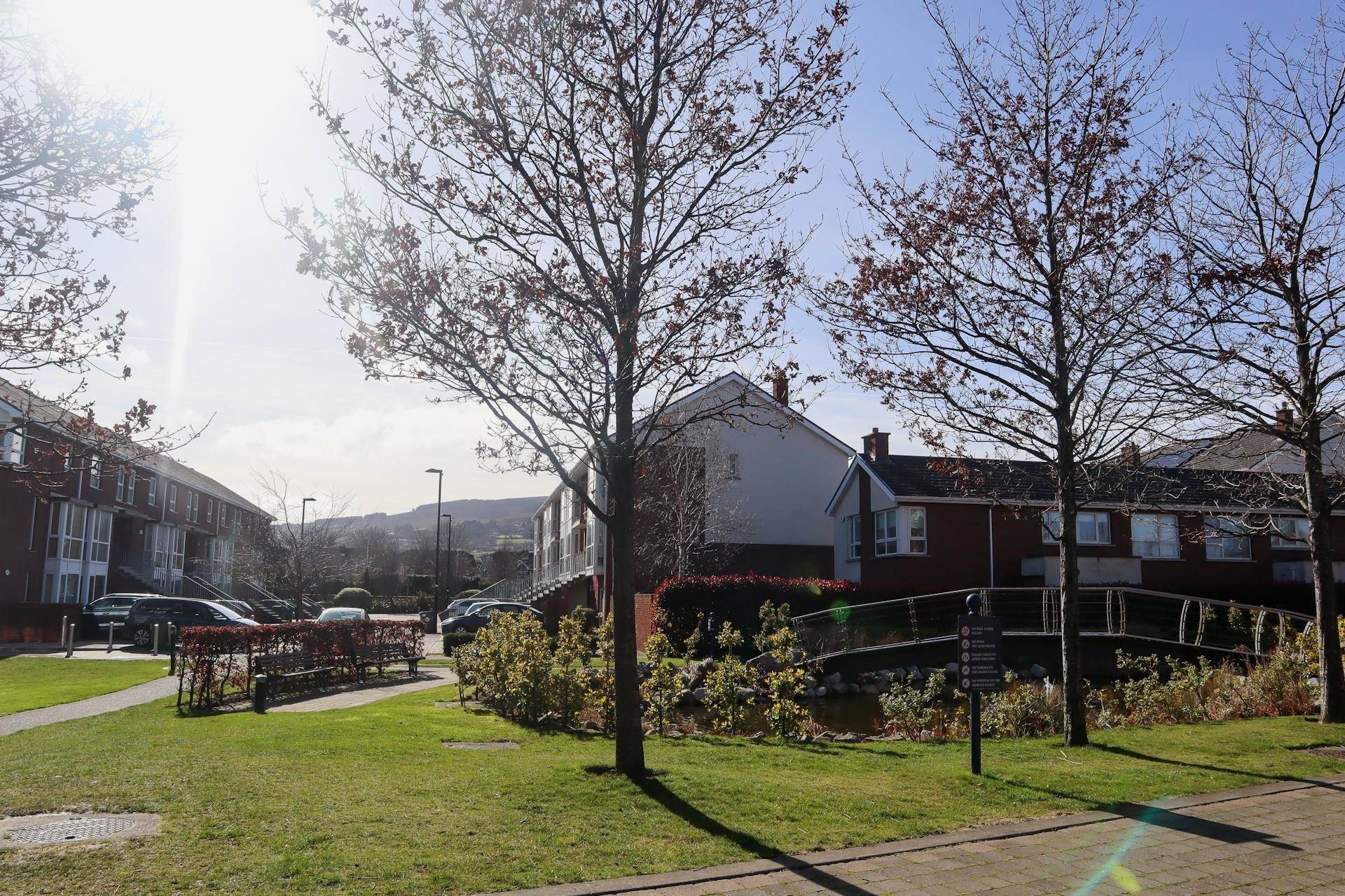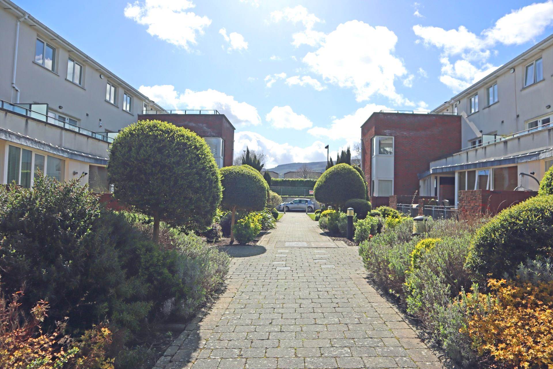 It is in the same development as Levmoss Hall, Mimosa Hall and Weavers Hall. #47 has one dedicated parking space in a secure gated underground garage. There are visitor parking spaces on the access road at the top of the walkway, and also on each of the cul-de-sacs. It is a well maintained and attractively landscaped development. It is a quiet spot well away from any M50 road noise.