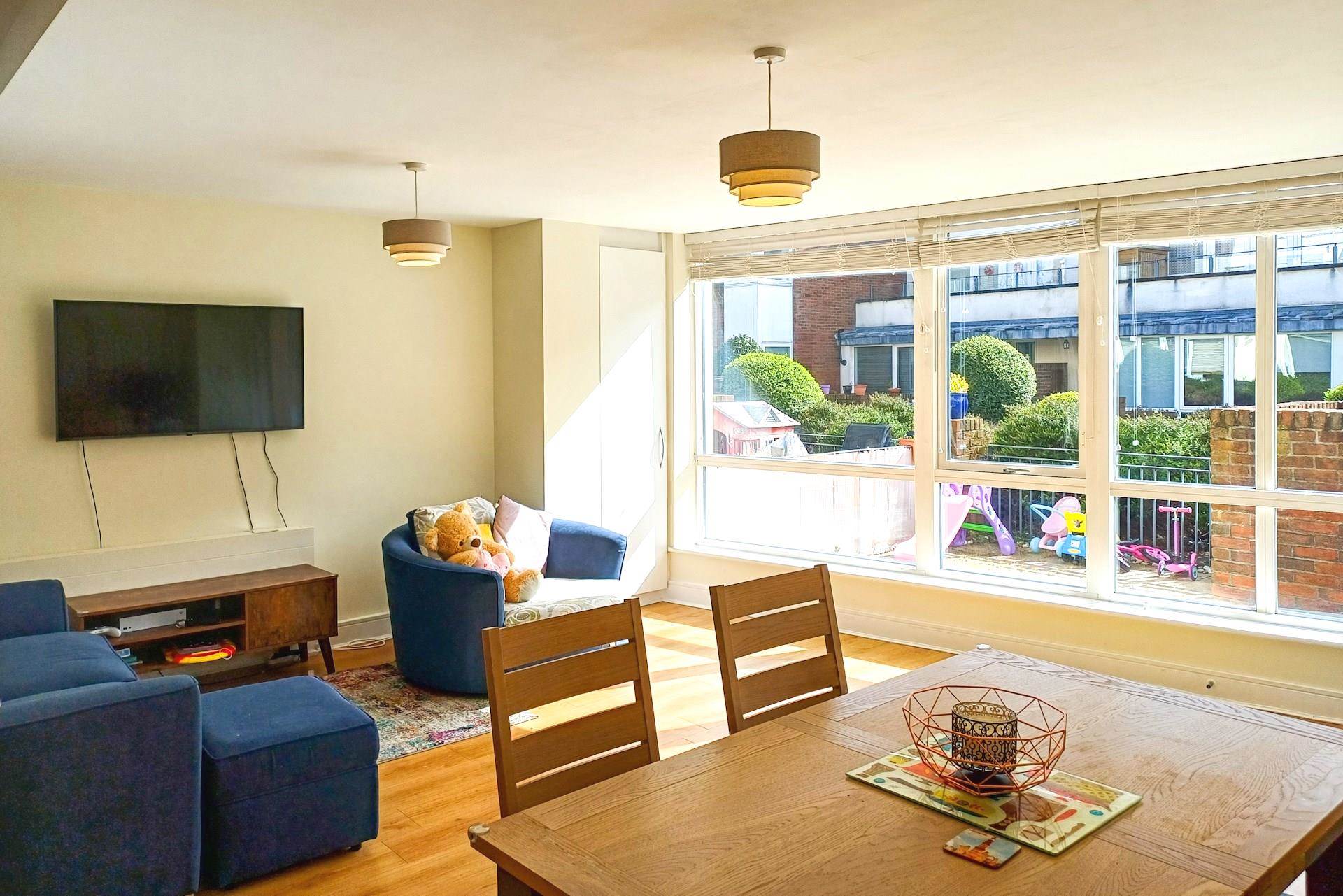 A delightful 2 double bed, 2 bath, own door garden level apartment with it`s own sunny patio area, facing a quiet walkway. A large full height window opens from the main living area to the patio, creating a vibrant indoor/outdoor connection and flooding this space with abundant natural light.