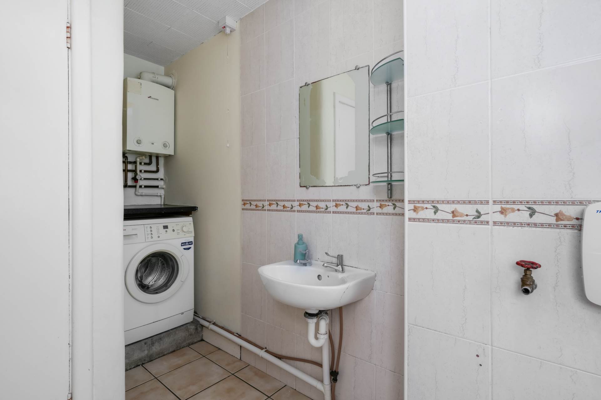 With tile floor and electric shower