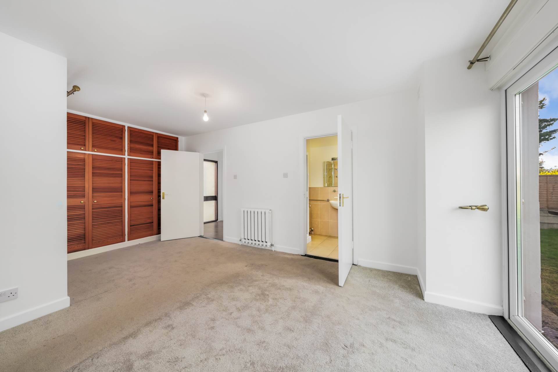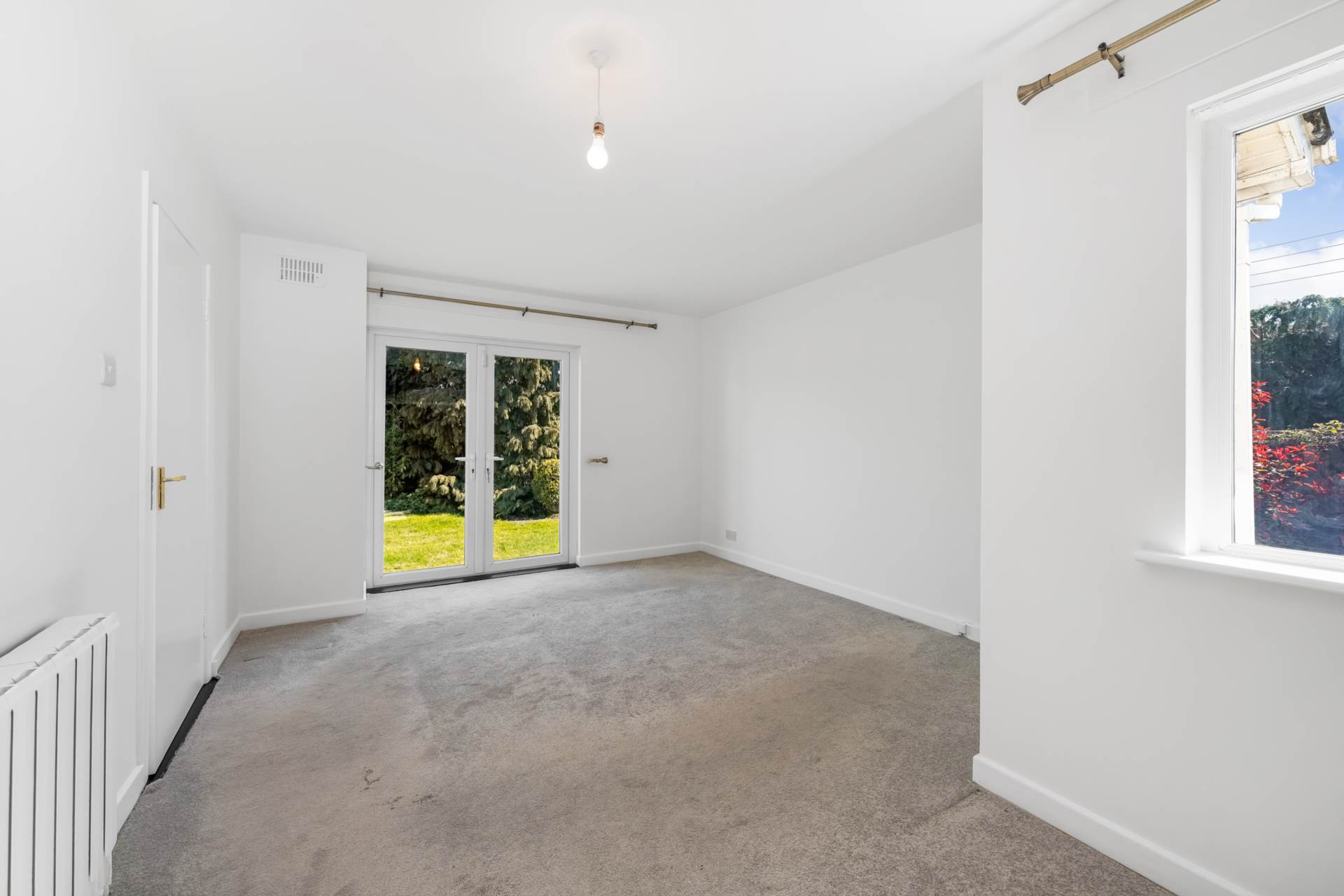 French doors to back garden. Window. Large double wardrobe. Door to ensuite. Carpet.
