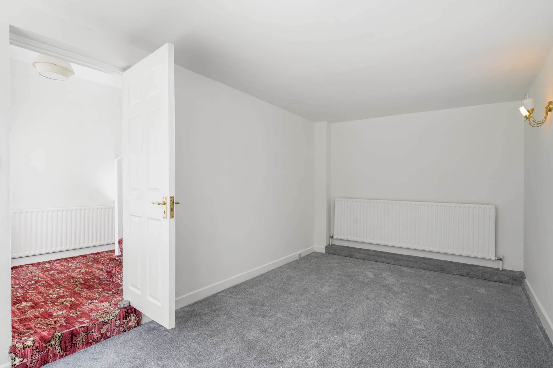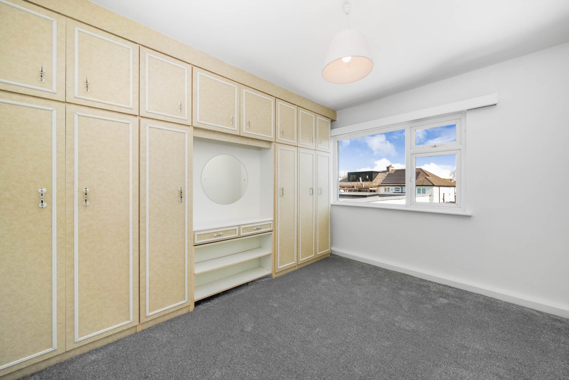 Spacious double bedroom. Large window to front. Fitted wardrobes incorporating a dressing table. Carpet over pine floorboards.