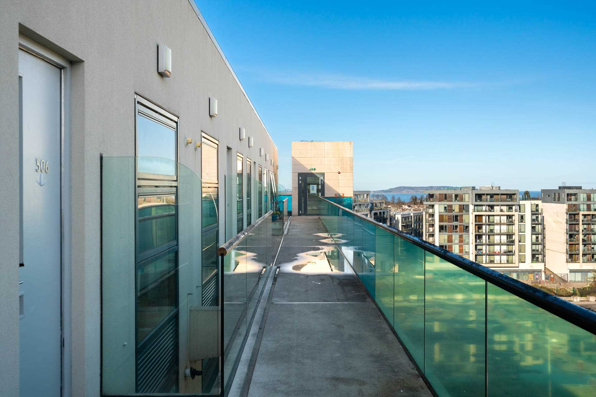 The Edges is a stunning design of high specification own door apartments opening off a high level terrace. #505 is on the top floor where it benefits from unobstructed natural light and views to the east across Dublin Bay to Howth and Three Rock Mountain to the west. There is lift access from a door beside Dunnes Stores in the corner of the Beacon South Quarter retail park. There is a concierge on site and 24hr security. There is a high speed broadband connection which will soon be Siro enabled.