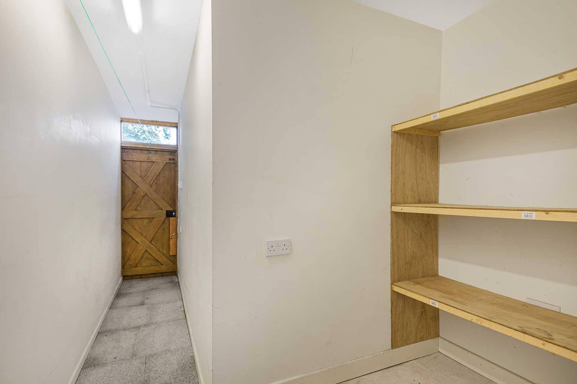 Part of the original garage left after the wetroom was installed. Door to front. Door to kitchen.