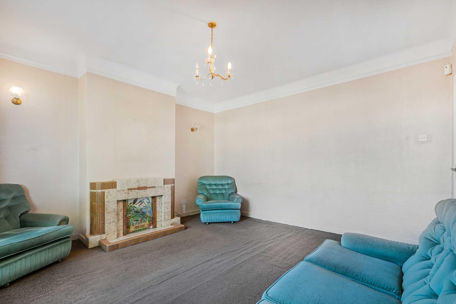Beautifully proportioned room. Tiled fireplace with open fire. Wall lights. Brass light fitting. Coving.