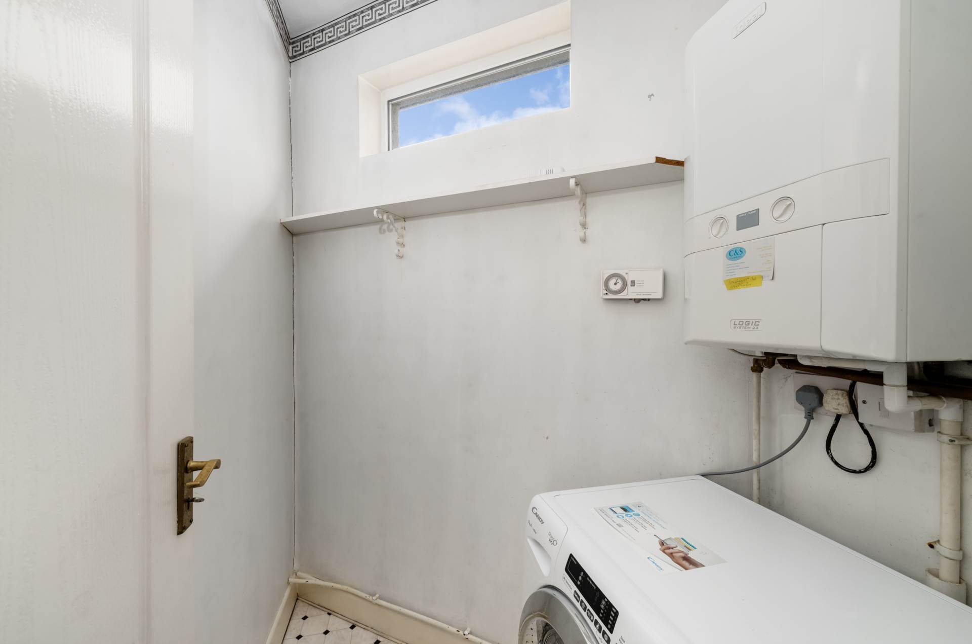 Connected to the bathroom you will find a utility room with a fitted washing machine and the boiler